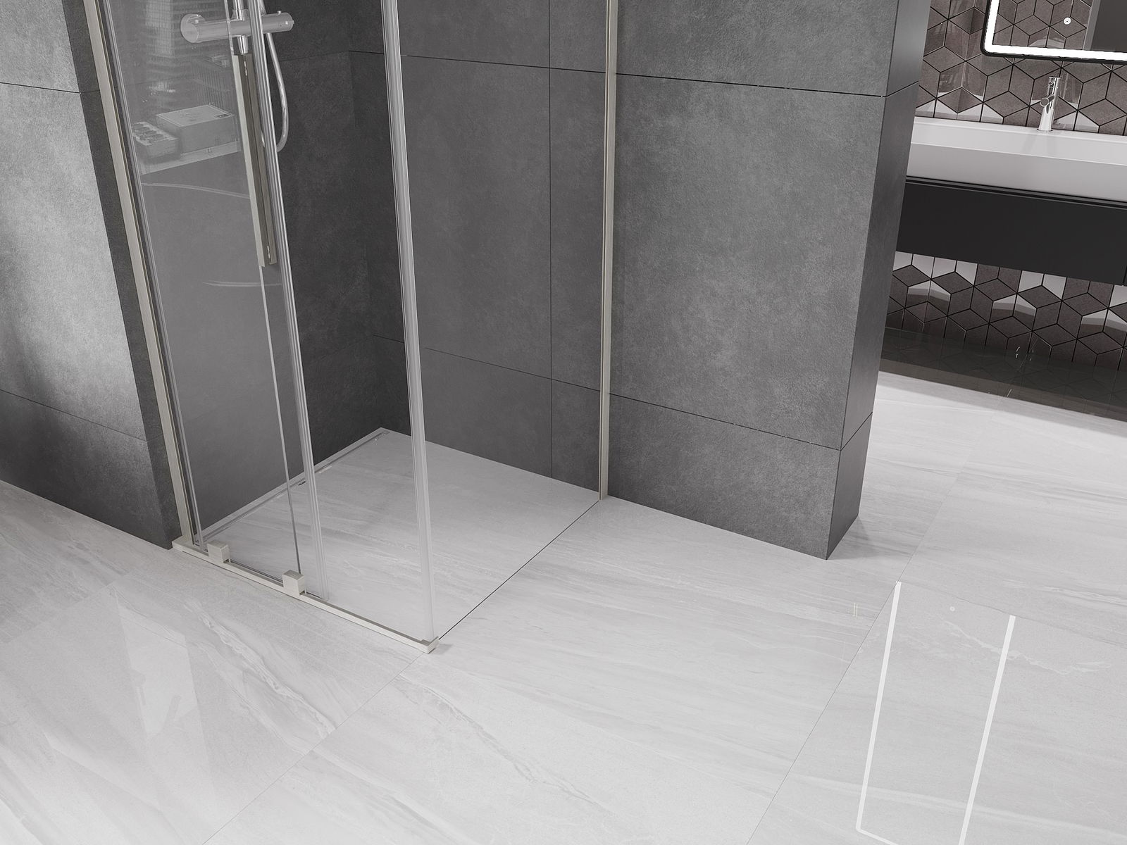 Mexen Velar L плъзгаща се душ кабина 110 x 110 см, прозрачна, четкан никел - 871-110-110-03-97