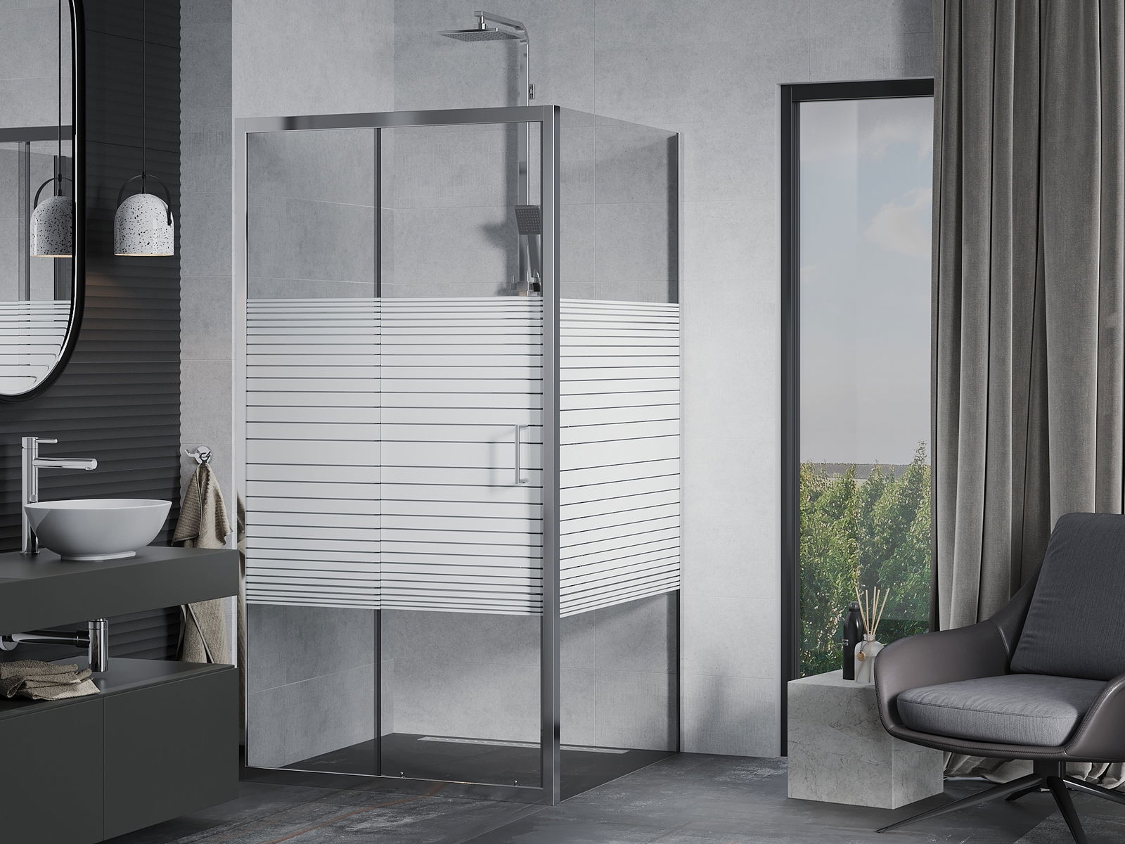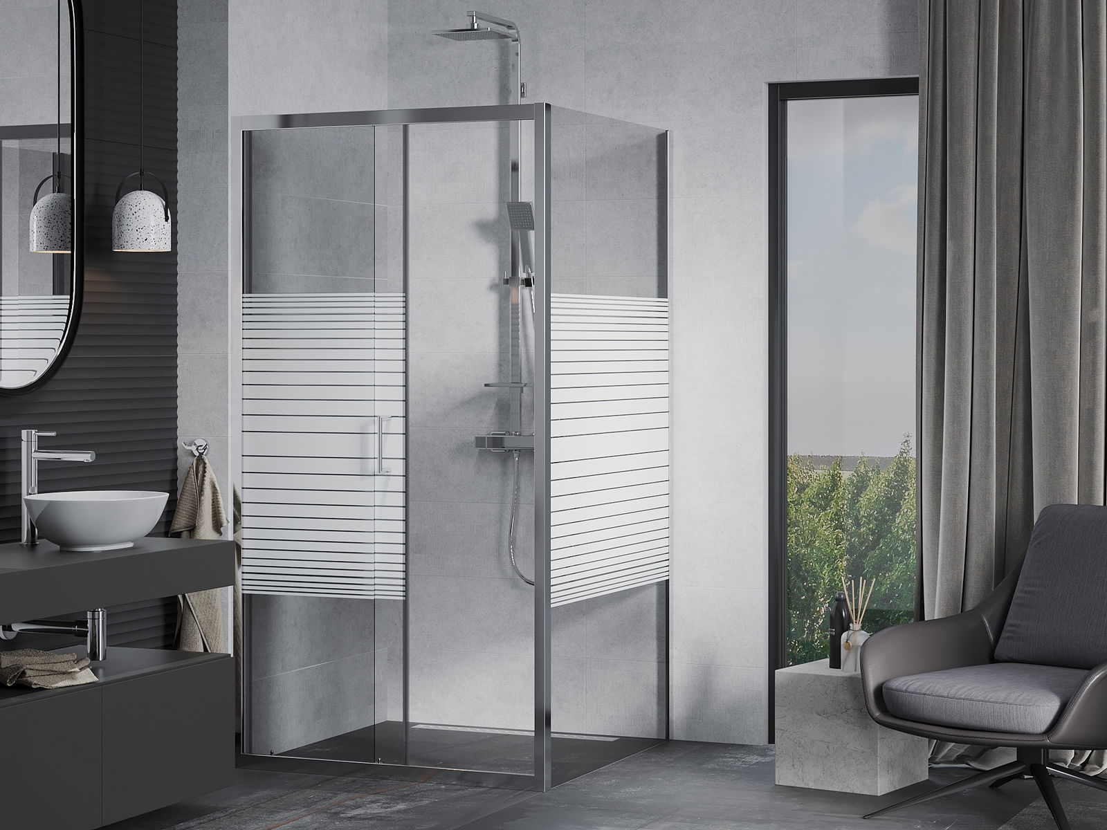 Mexen Apia плъзгаща душ кабина 100 x 100 см, бели ленти, хром - 840-100-100-01-20