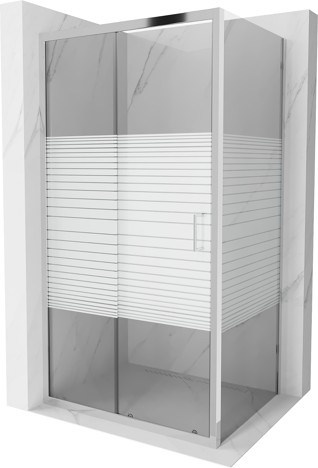 Mexen Apia плъзгаща се душ кабина 110 x 80 см, бели ленти, хром - 840-110-080-01-20