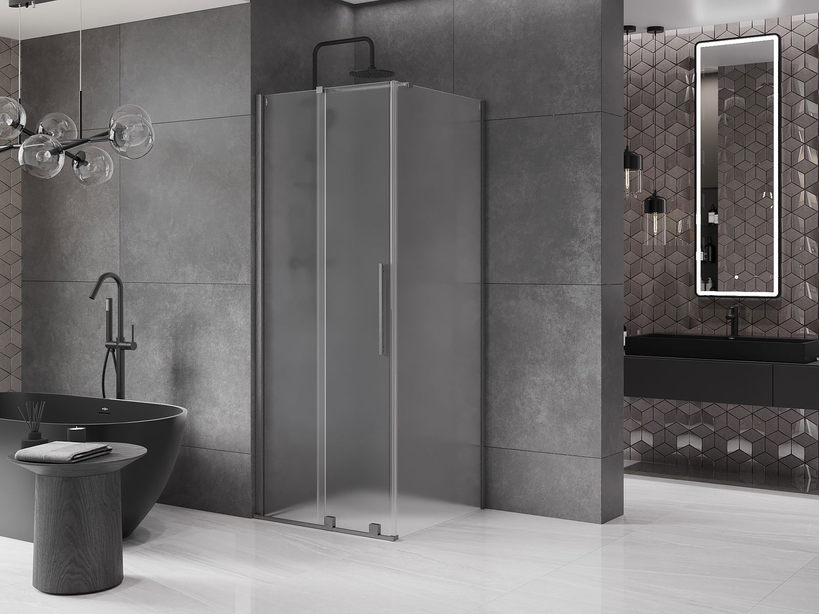 Mexen Velar плъзгаща се душ кабина 100 x 100 см, матирана, четкано сиво - 871-100-100-31-66