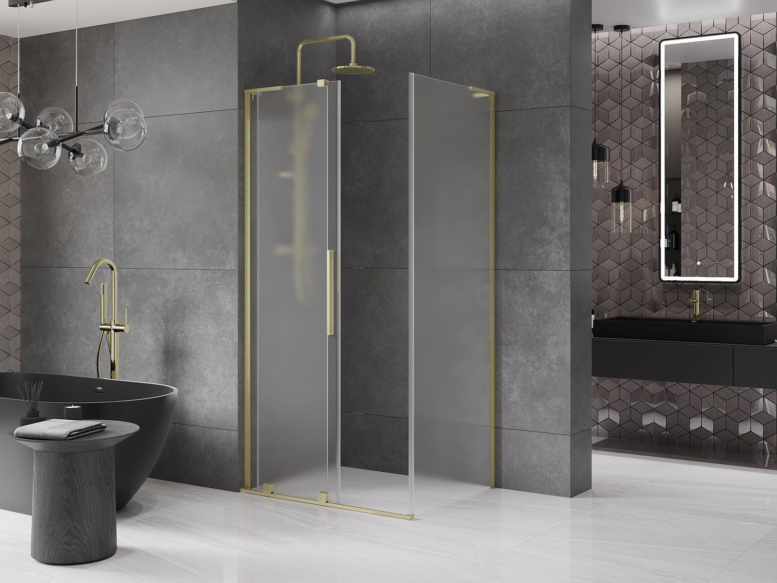 Mexen Velar L плъзгаща се душ кабина 110 x 75 см, матирана, четкана злато