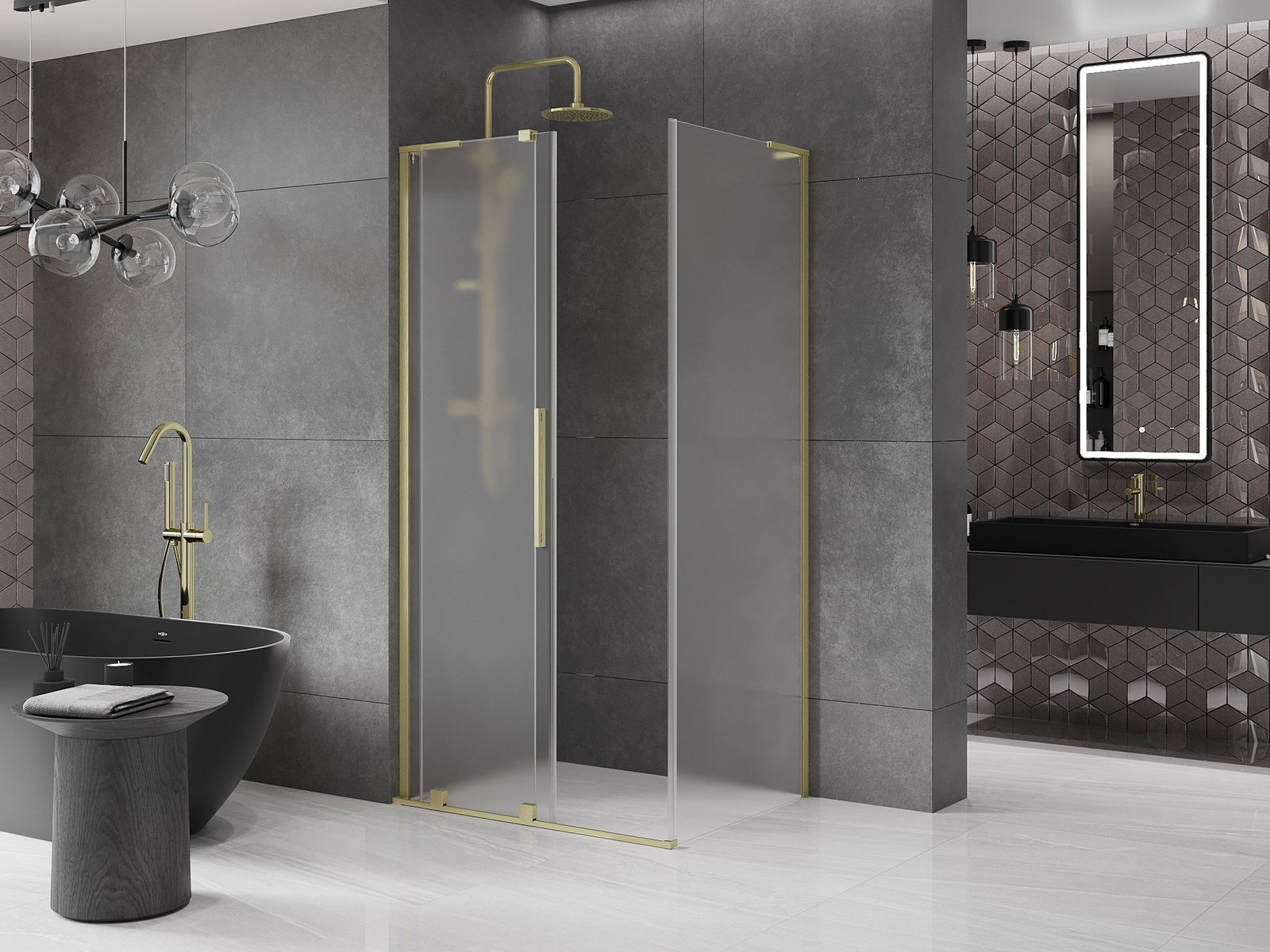 Mexen Velar L плъзгаща се душ кабина 120 x 70 см, матирана, златисто четкана