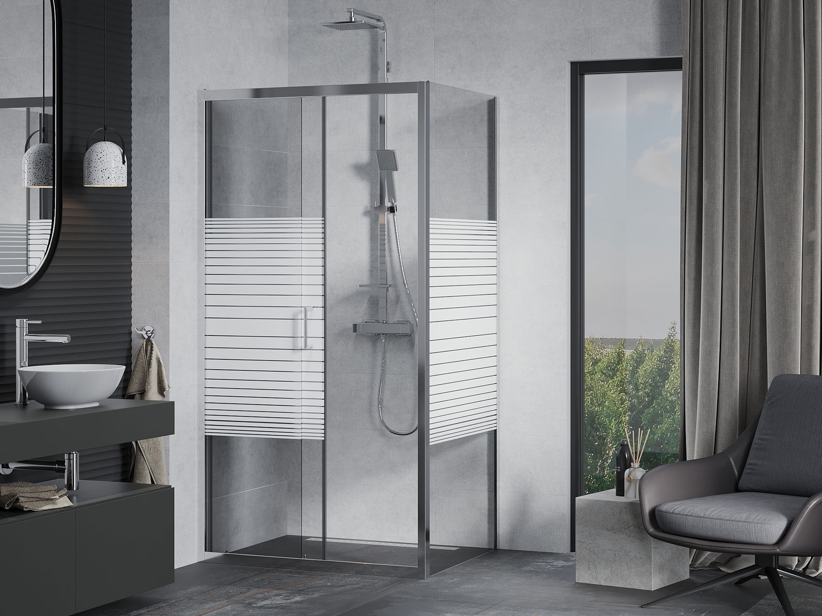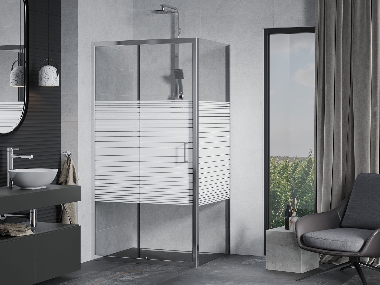 Mexen Apia плъзгаща се душ кабина 140 x 90 см, бели ивици, хром - 840-140-090-01-20