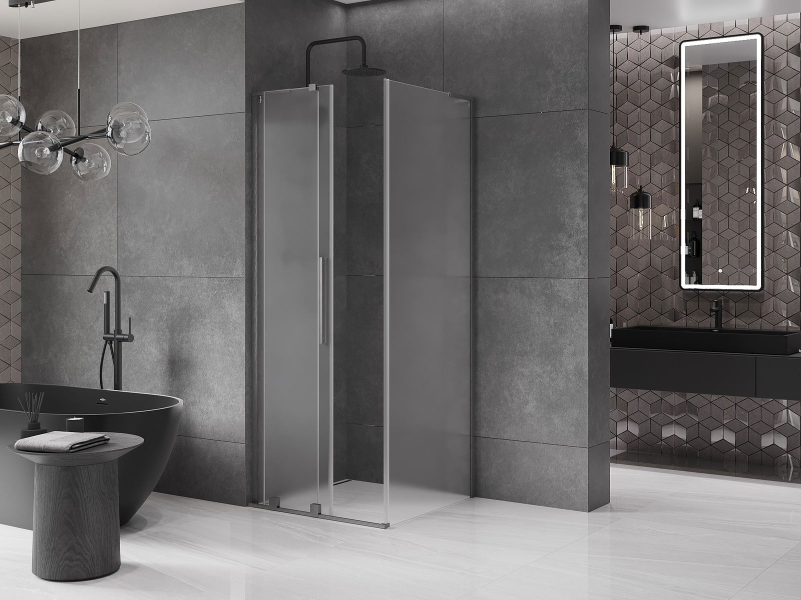 Mexen Velar L плъзгаща се душ кабина 100 x 100 см, матирана, четкано сиво - 871-100-100-33-66