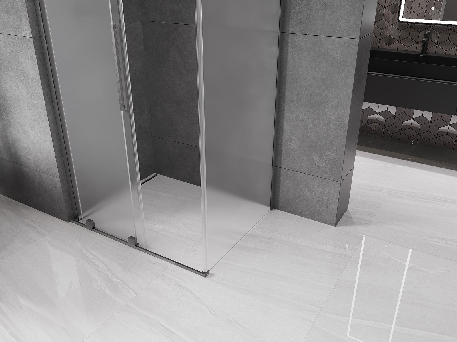 Mexen Velar L плъзгаща се душ кабина 120 x 110 см, матирано, четкан пистолетно сиво - 871-120-110-33-66