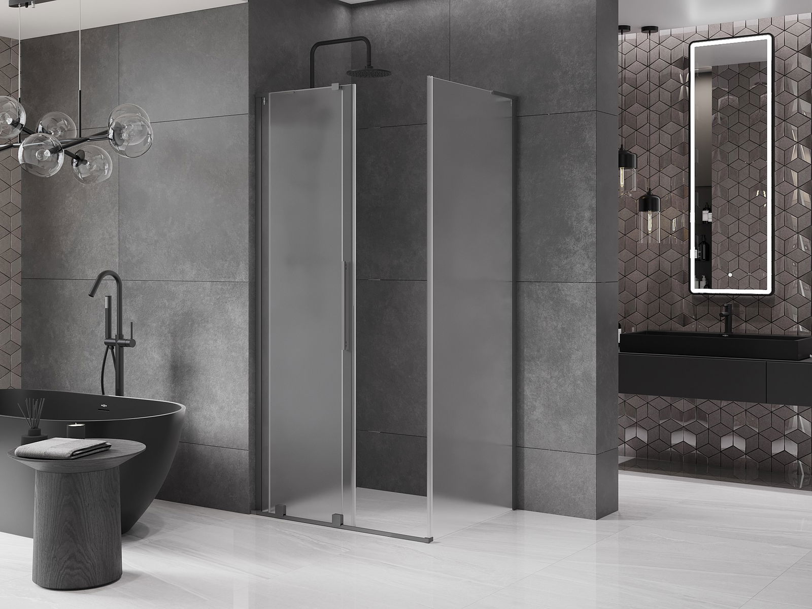Mexen Velar L плъзгаща се душ кабина 90 x 75 см, матирано стъкло, gun metal - 871-090-075-33-95