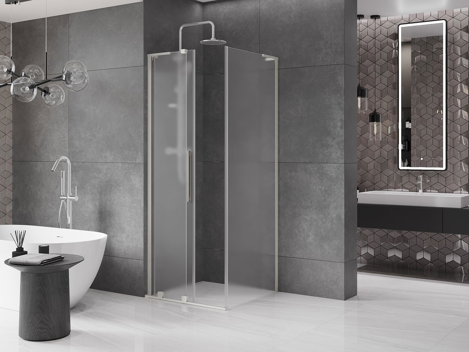 Mexen Velar L плъзгаща се душ кабина 100 x 100 см, матирано стъкло, четкан никел - 871-100-100-33-97