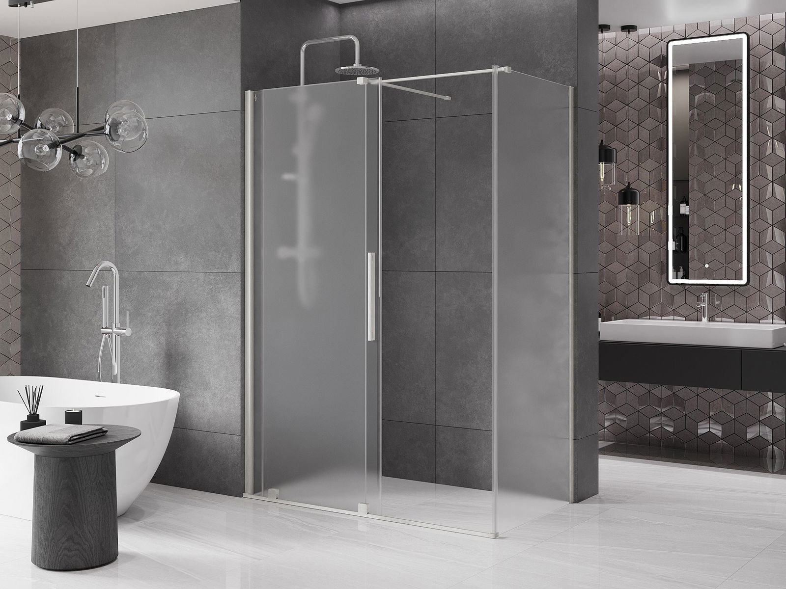 Mexen Velar плъзгаща се душ кабина 150 x 70 см, матирано стъкло, четкован никел