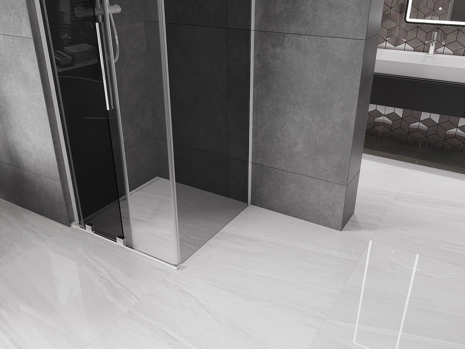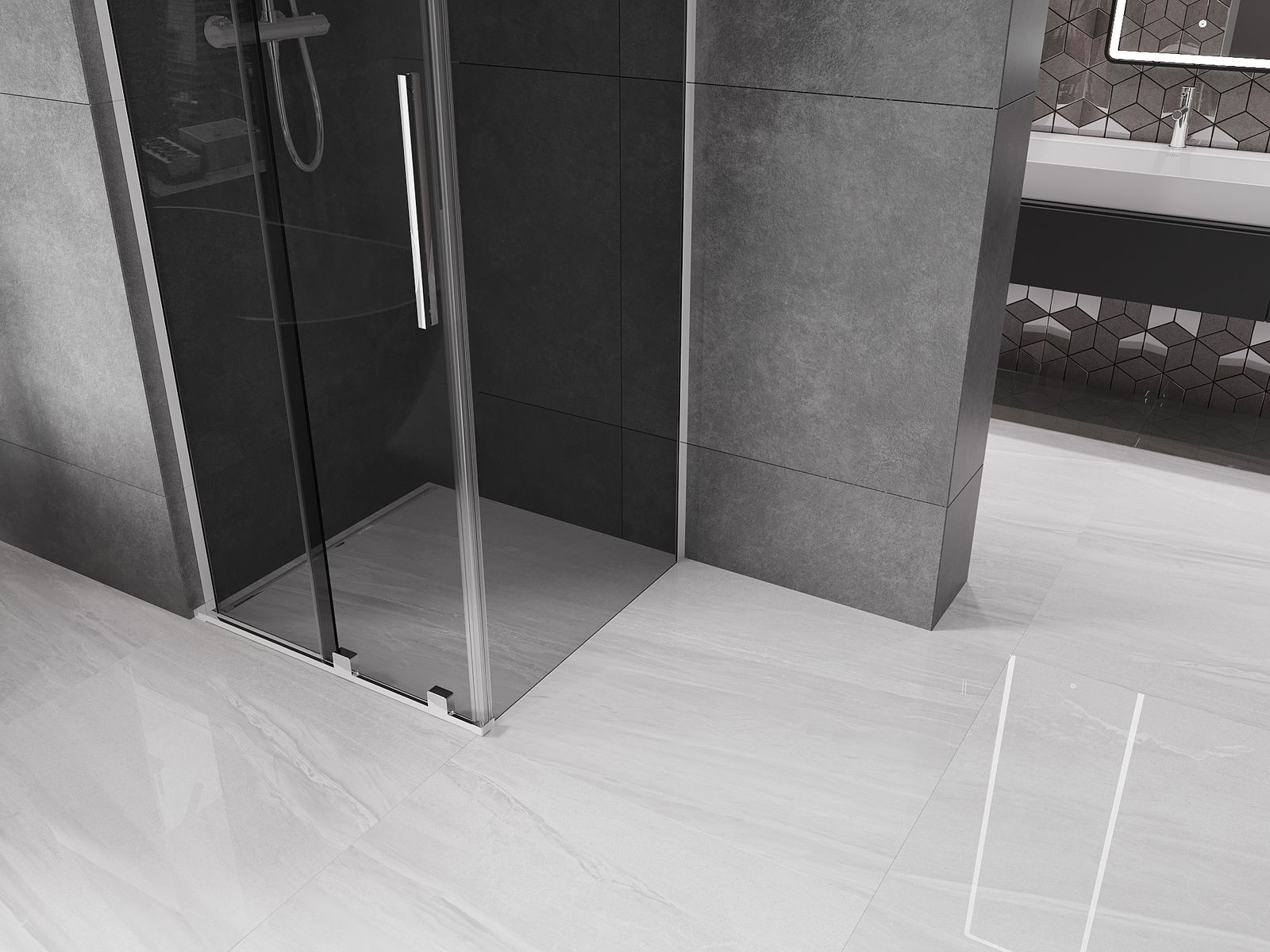 Mexen Velar L плъзгаща се душ кабина 90 x 90 см, графит, хром - 871-090-090-43-01