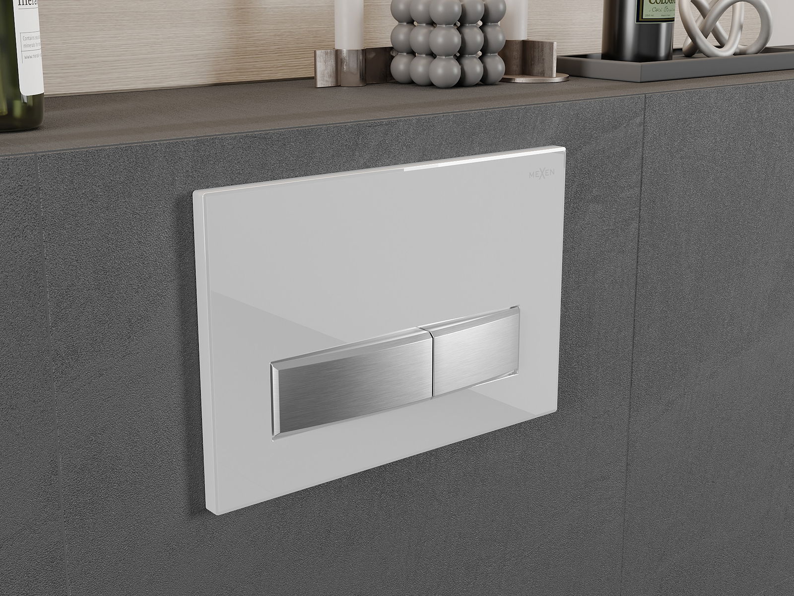 Бутонът пасва на рамката от серията Mexen Fenix Slim, в която е възможно да се инсталира отпред. Популярно и практично решение, особено в баните, където достъпът до бутона отпред е по -удобен.