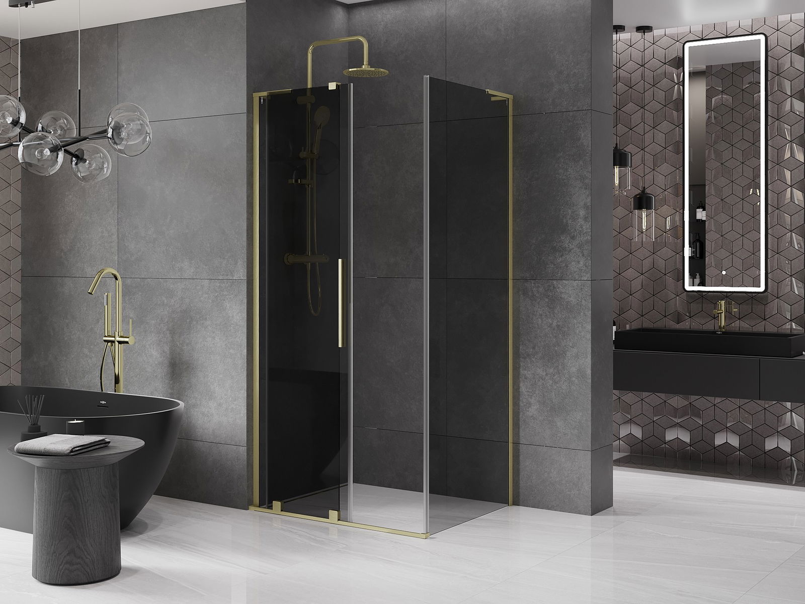 Mexen Velar L плъзгаща се душ кабина 120 x 110 см, графит, четкано злато - 871-120-110-43-55