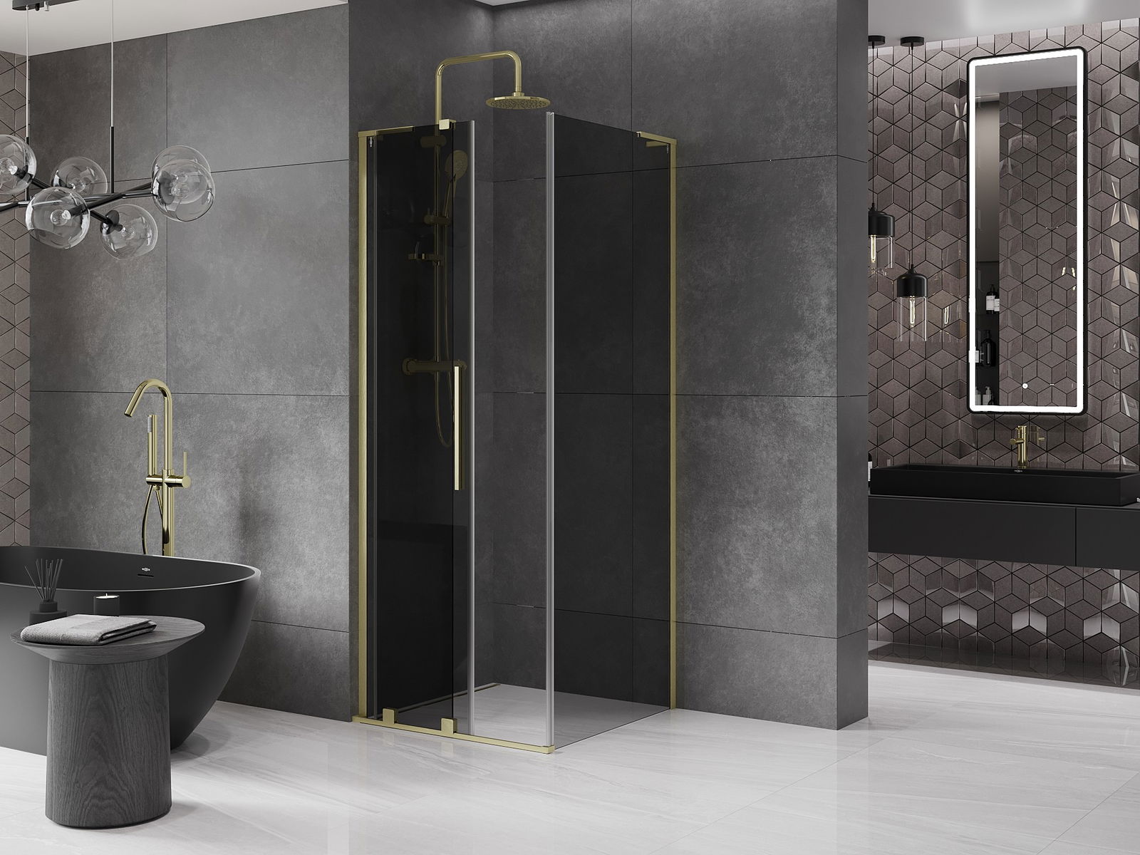 Mexen Velar L плъзгаща се душ кабина 120 x 120 см, графит, златно четкано - 871-120-120-43-55