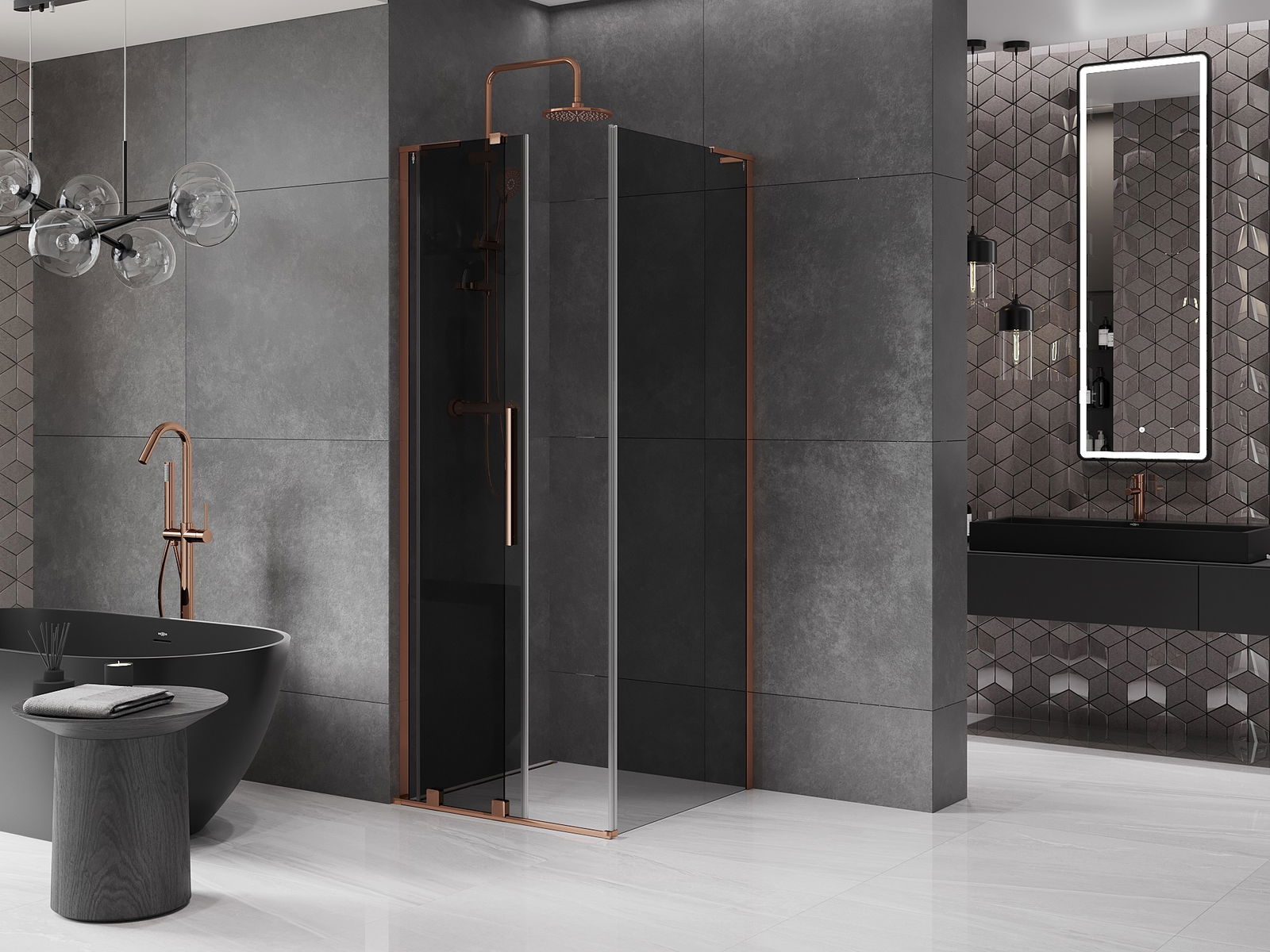 Mexen Velar L раздвижна душ кабина 110 x 110 см, графит, розово злато - 871-110-110-43-60