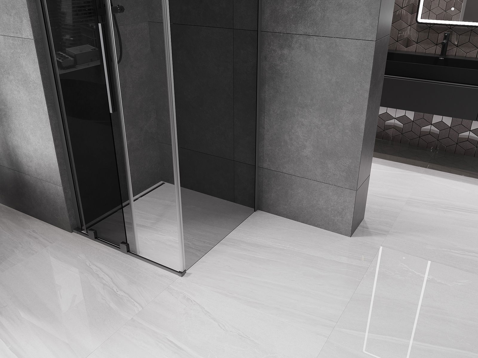 Mexen Velar L плъзгаща се душ кабина 90 x 90 см, графит, оръжеен метал - 871-090-090-43-95