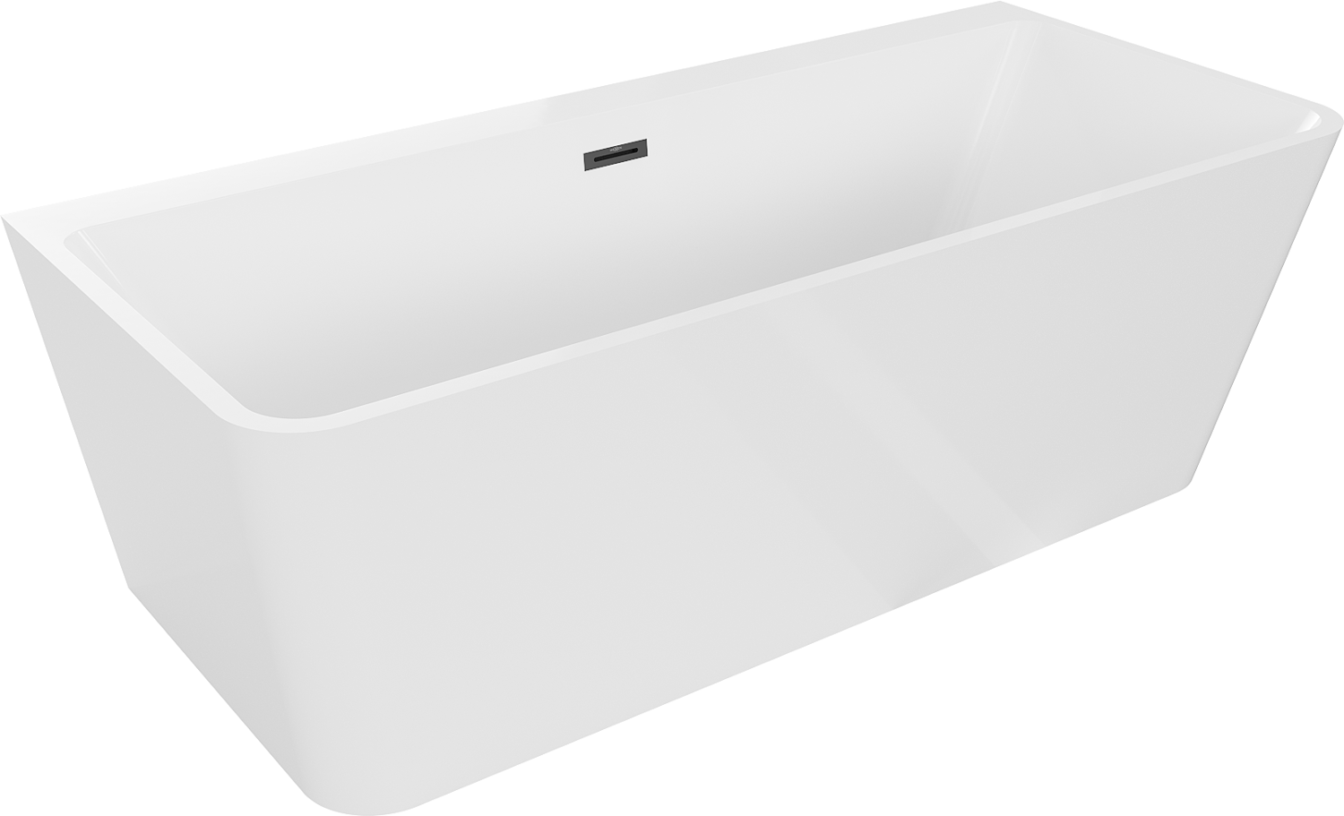 Mexen Volta свободностояща вана до стена 150 x 75 cm, бяла, черен преливник - 51131507500-70