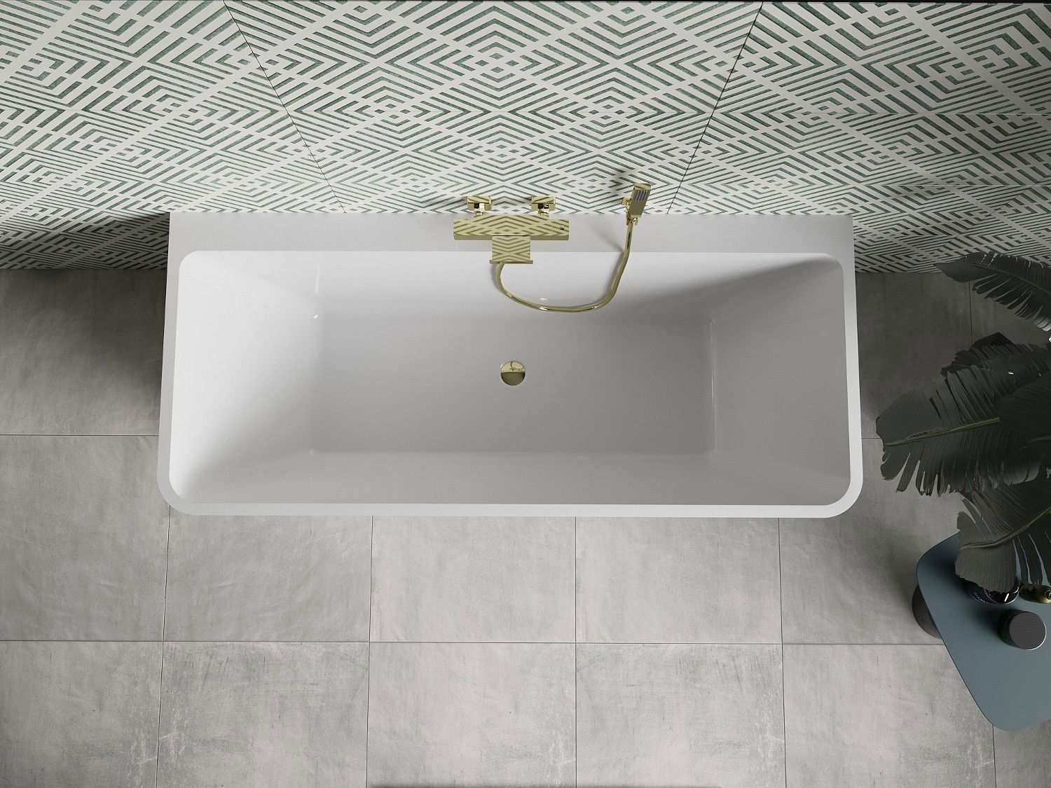 Mexen Volta свободностояща вана до стена 170 x 75 см, бяла/черна, златен прелив