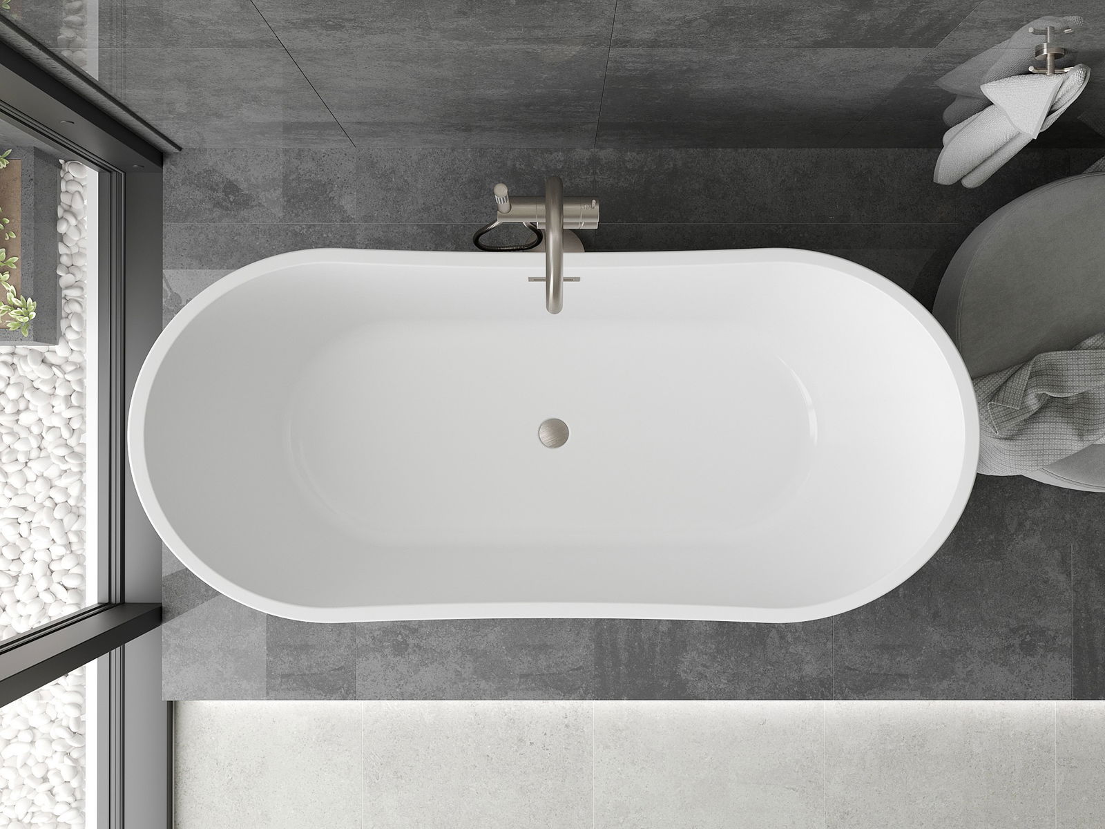Mexen Montana е елегантна свободностояща вана с размери 150 x 75 cm, изработена от санитарен акрил, осигуряваща издръжливост и лесна поддръжка. Нейната овална форма и модерен, блестящ бял цвят хармонично се вписват във всяко обзавеждане на баня. Ваната е оборудвана с отвор за преливник, което увеличава комфорта на използване. Благодарение на устойчивостта на матоване и UV лъчи, продуктът запазва първоначалния си вид за дълго време. Комплектът включва също сифон и клапан "клик-клак".