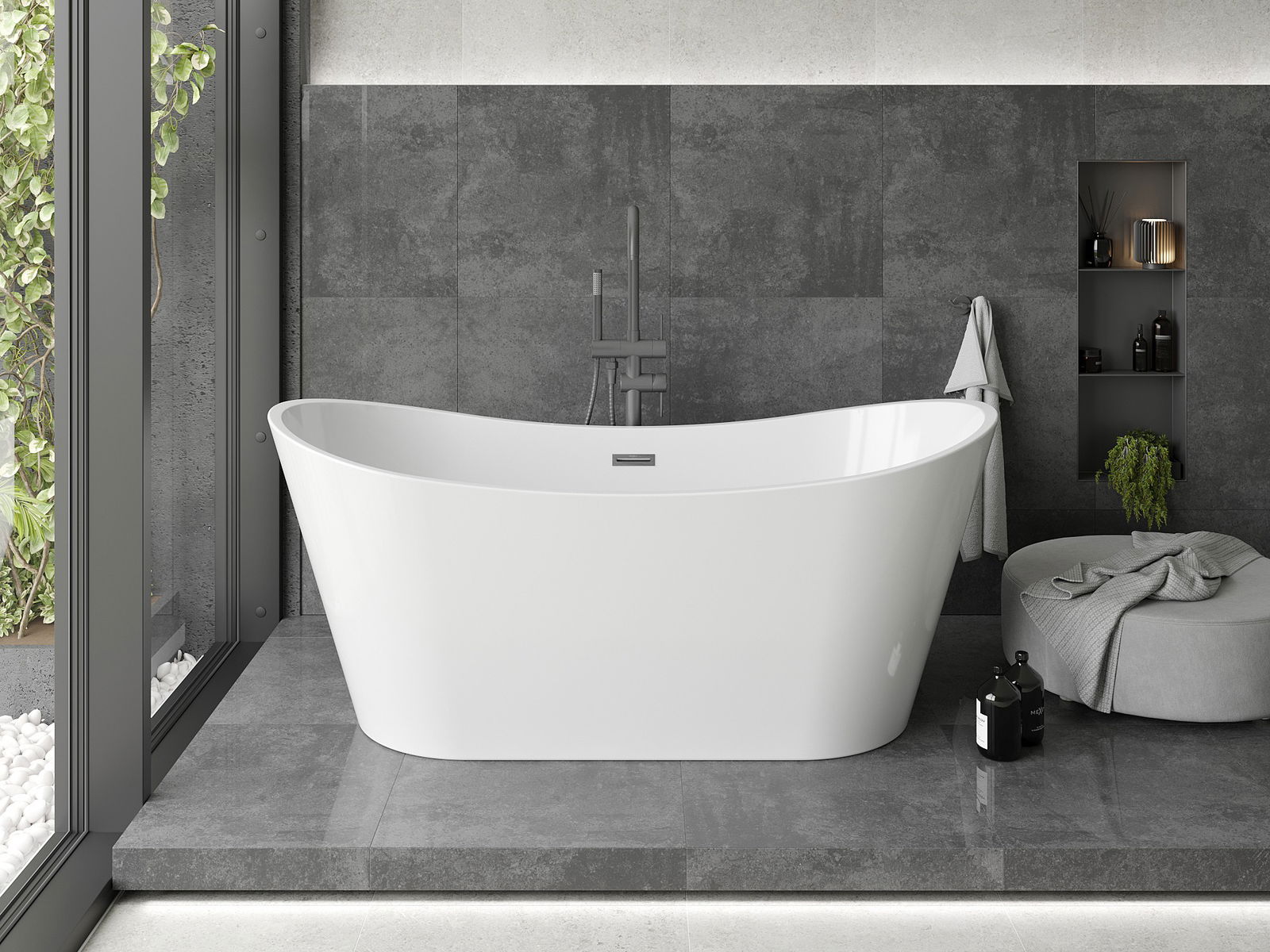 Mexen Montana Свободностояща вана 170 x 80 см, бяла, преливник gun gray четкан