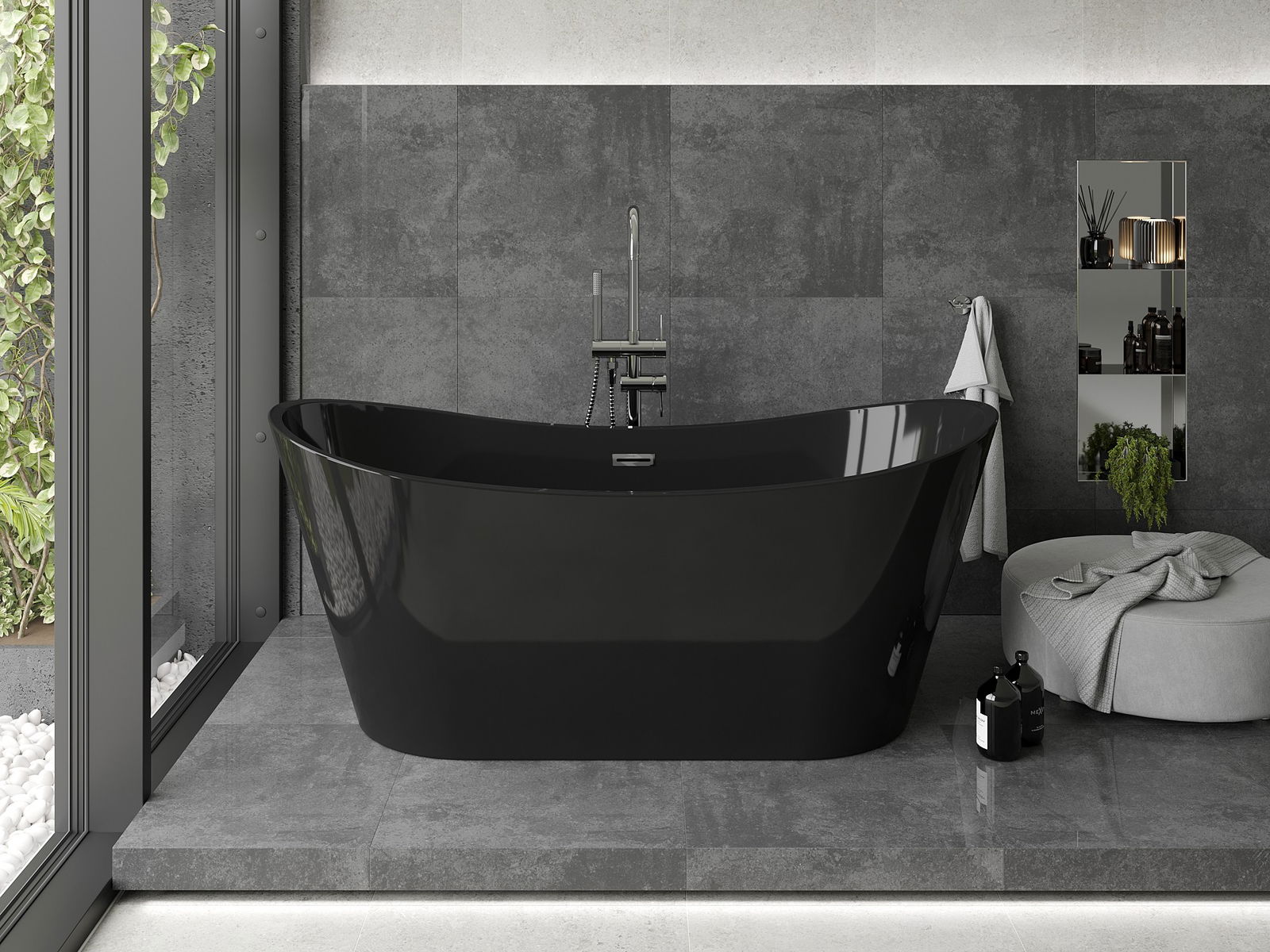 Mexen Montana самостоятелна вана 170 x 80 cm, черна, хромирано преливане