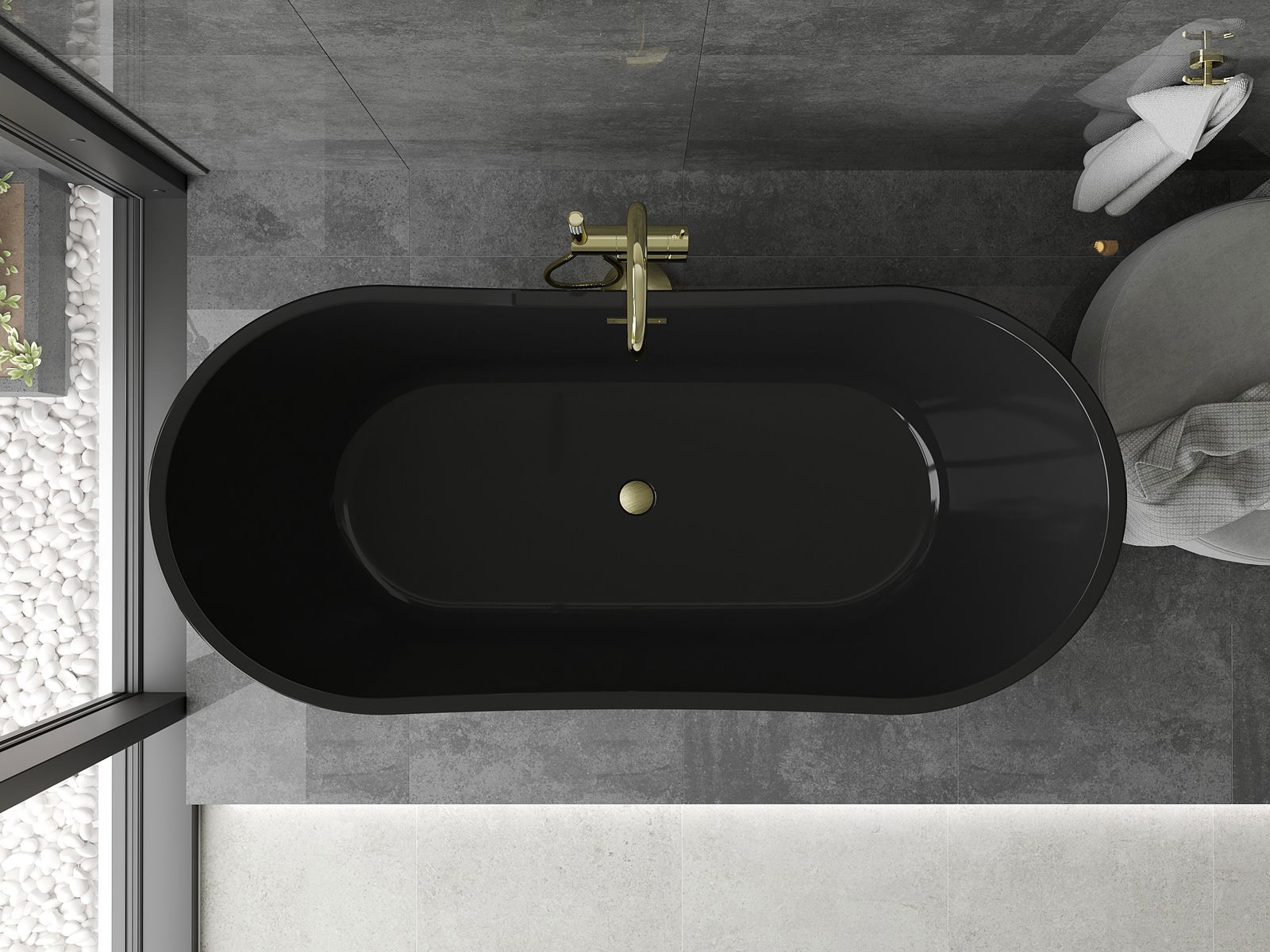 Mexen Montana самостоятелно стояща вана 170 x 80 см, черна, преливане в златно