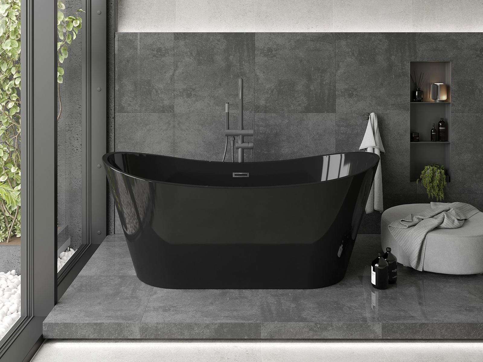 Свободностоящата вана с размери 170 x 80 см е идеалното решение за модерната баня. Изработена от санитарен акрил, тя осигурява висока устойчивост на помътняване и UV лъчи. Елегантният черен цвят, комбиниран с покритие gun gray матирано, придава уникален характер. Овалната форма и свободностоящият монтаж гарантират лесен монтаж, а отворът за преливане увеличава функционалността.