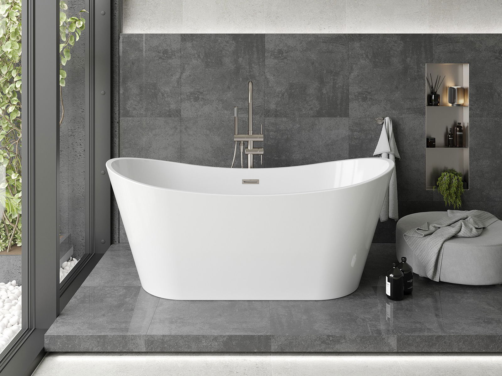 Самостоятелната вана с размери 180 x 80 см се отличава с елегантен бял цвят и изключителен сатенен никелов завършек. Изработена от санитарен акрил, предоставя устойчивост на матовост и UV радиация. Овалната форма и височината от 72 см допринасят за комфортното използване. Ваната е лесна за монтаж благодарение на самостоятелната конструкция, а отворът за преливник увеличава функционалността й. Комплектът включва сифон и клик-клак затвор, което я прави готова за употреба.