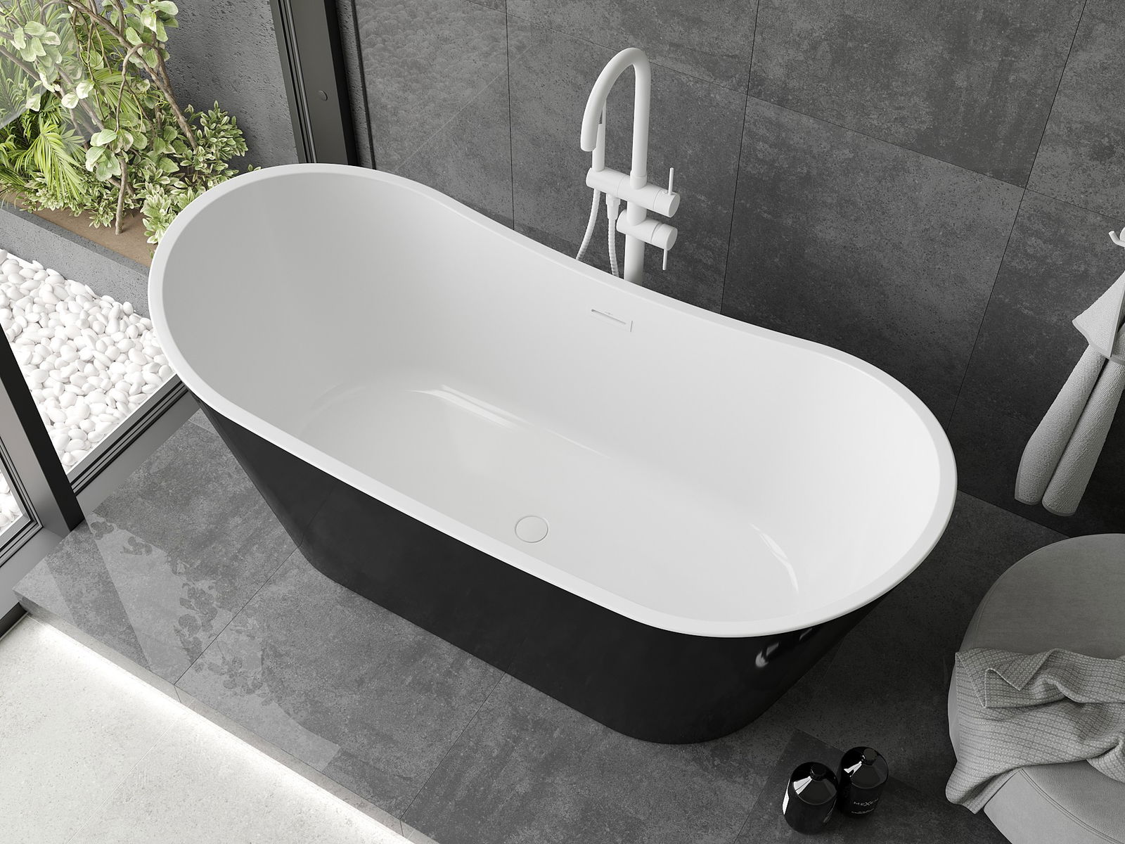 Свободностоящата вана в черно-бял цвят от серията Монтана съчетава елегантност и функционалност. Нейната овална форма и лъскава повърхност придават съвременен облик на всяка баня. С размери 180 x 80 cm и дълбочина 44,5 cm осигурява удобство при къпане. Изработена от санитарен акрил, тя е устойчива на замъгляване и UV лъчи. Ваната е оборудвана с отвор за преливане и сифон, което я прави готова за монтаж. Височината на ваната е 72 cm, което улеснява използването.