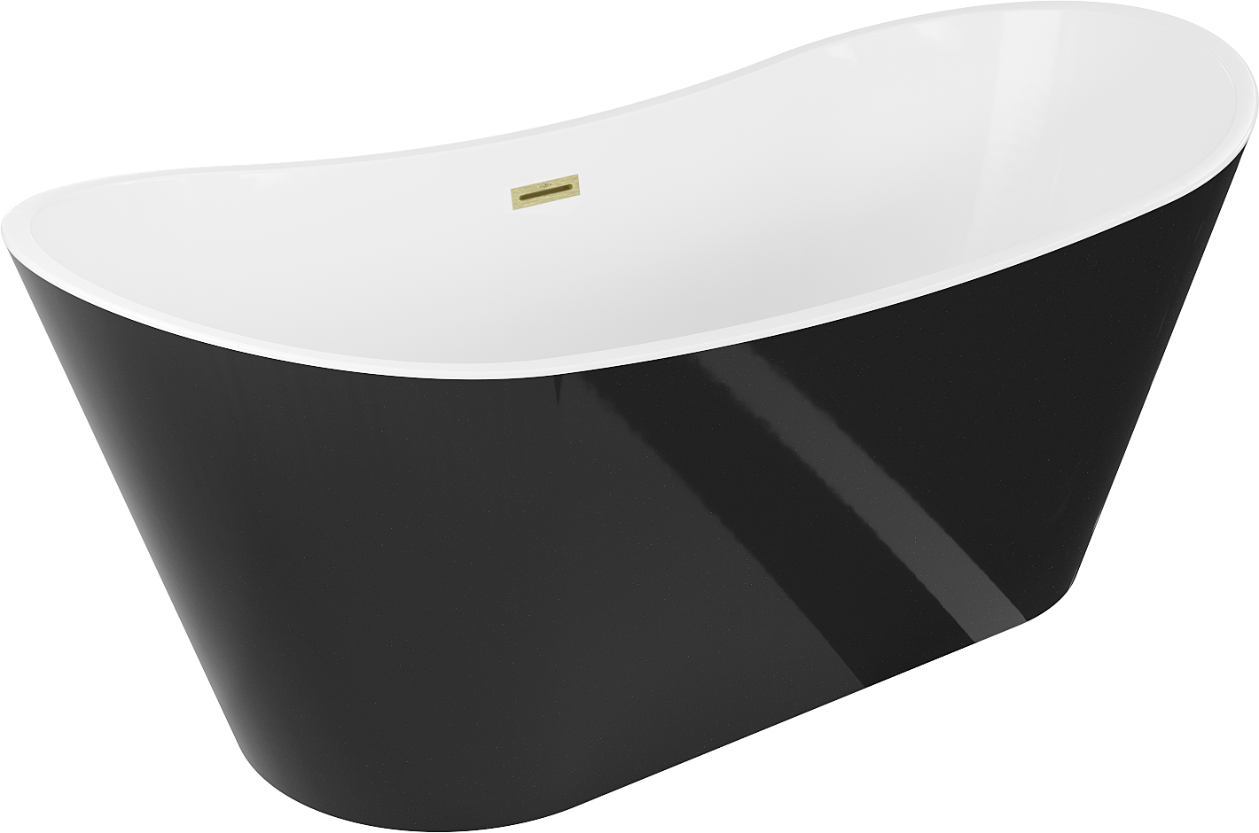 Mexen Montana самостояща вана 180 x 80 см, бяла/черна, преливна четка в злато