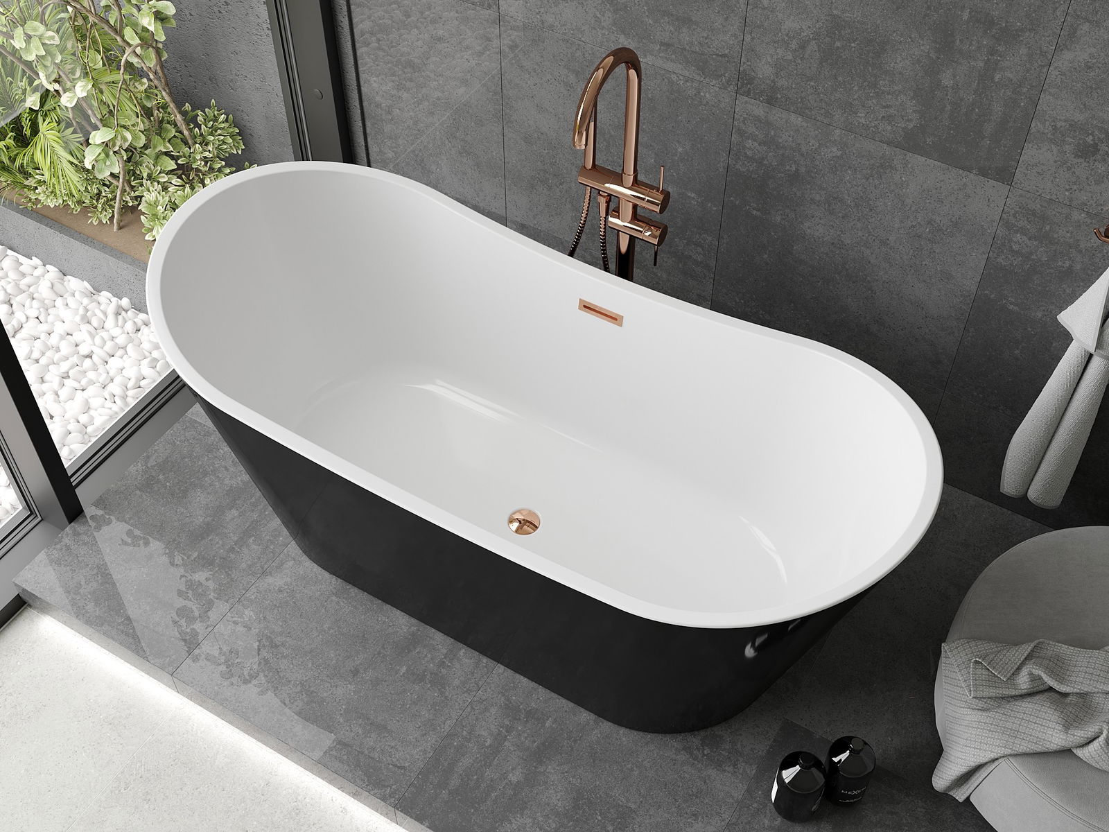 Mexen Montana свободностояща вана 180 x 80 см, бяла/черна, прелив розово злато