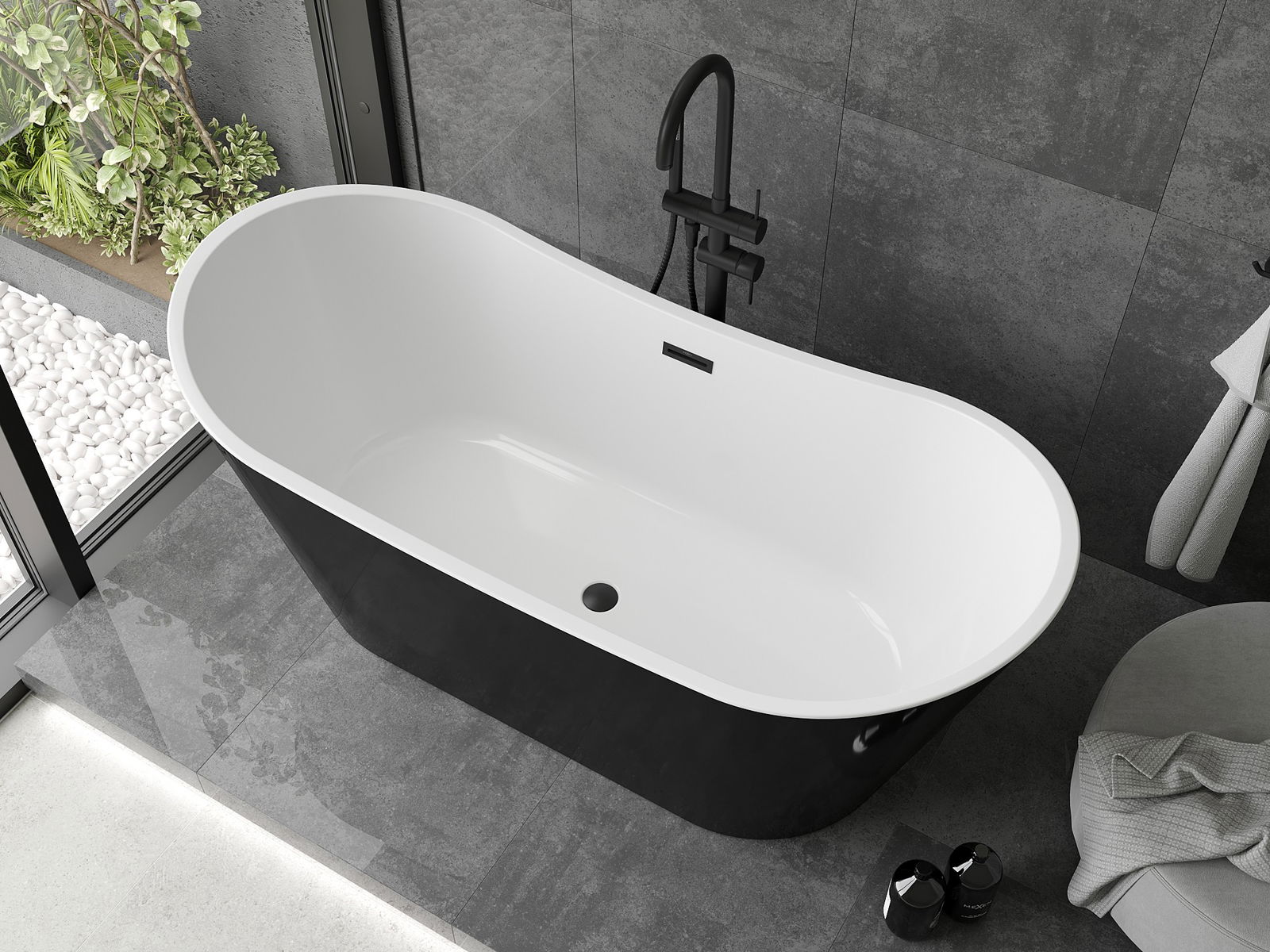 Mexen Montana самостоятелна вана 180 x 80 см, бяла/черна, черен преливник