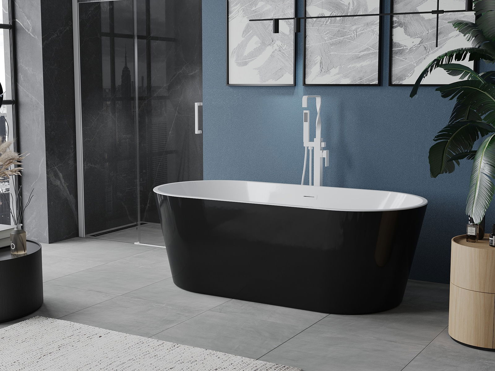 Mexen Luna свободностояща вана 160 x 75 cm, бяла/черна, бял преливник - 52031607575-20