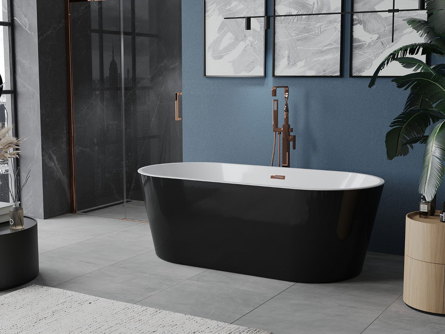 Mexen Luna свободностояща вана 160 x 75 см, бяла/черна, преливник розово злато - 52031607575-60