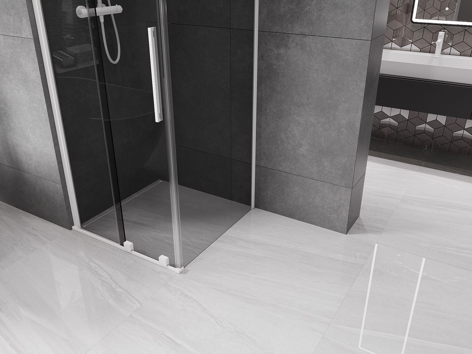 Mexen Velar плъзгаща се душ кабина 90 x 90 см, графит, бяла - 871-090-090-41-20