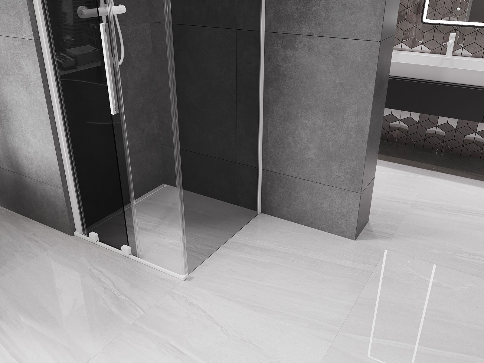 Mexen Velar плъзгаща се душ кабина 100 x 100 см, графит, бяло - 871-100-100-41-20