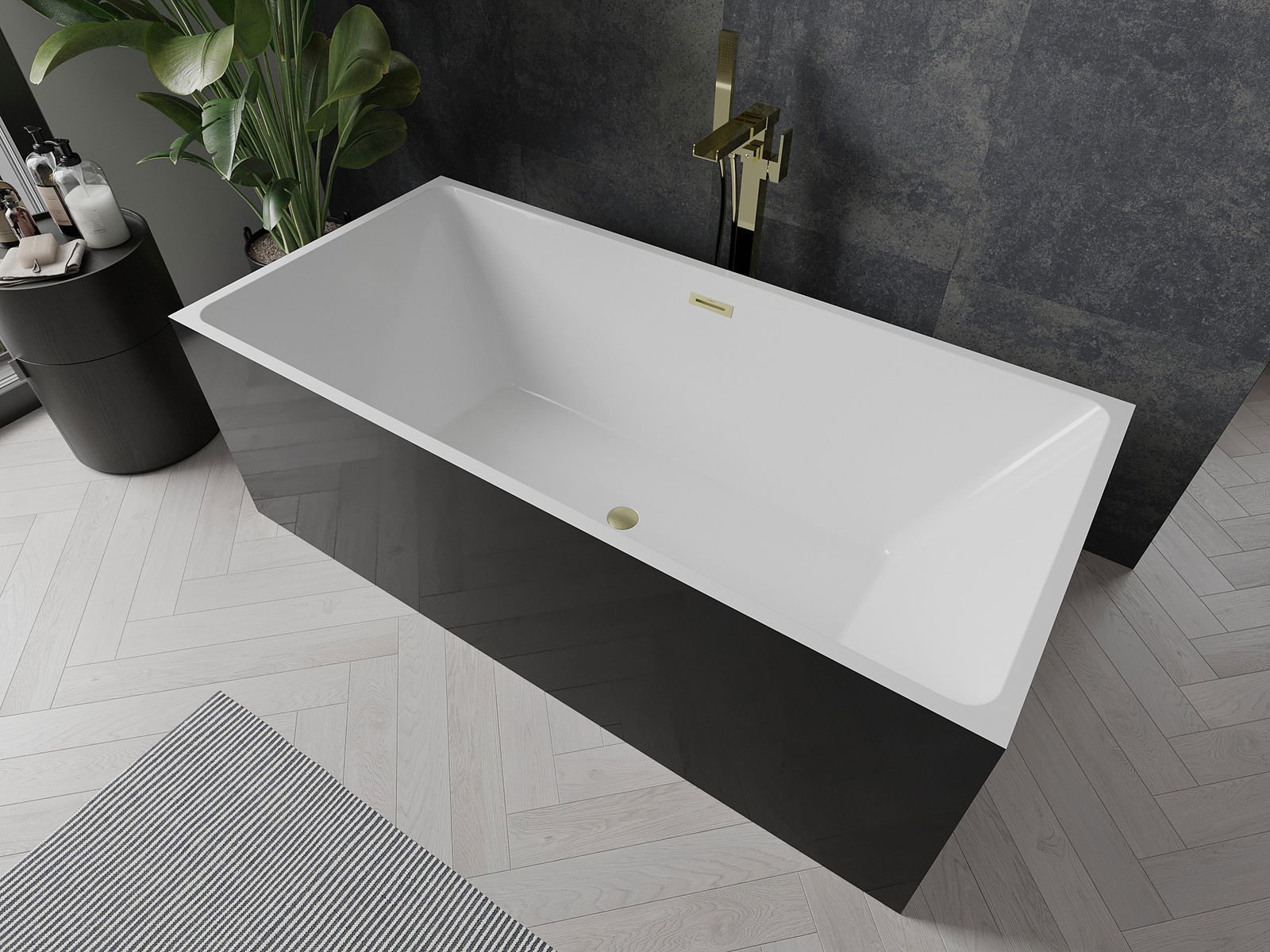 Mexen Nita свободностояща вана 170 x 80 см, бяла/черна, преливник златисто четкосано - 52091708075-55