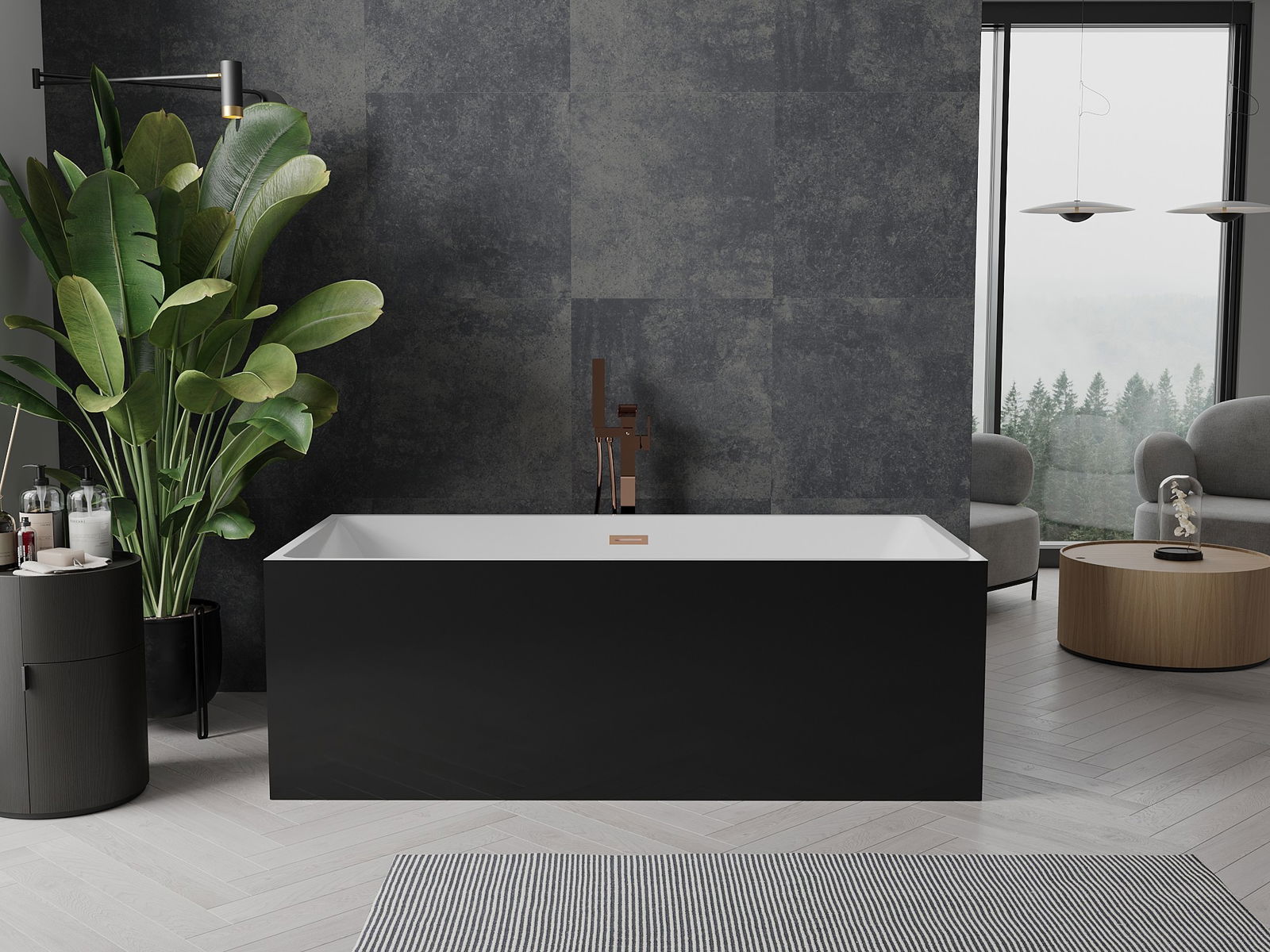 Mexen Nita самостоятелна вана 170 x 80 cm, бяла/черна, преливник розово злато - 52091708075-60