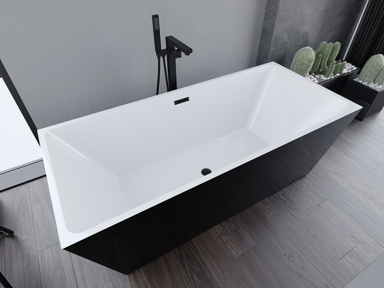 Mexen Lita самостоятелна вана 170 x 75 см, бяла/черна, преливник черен - 52121707575-70