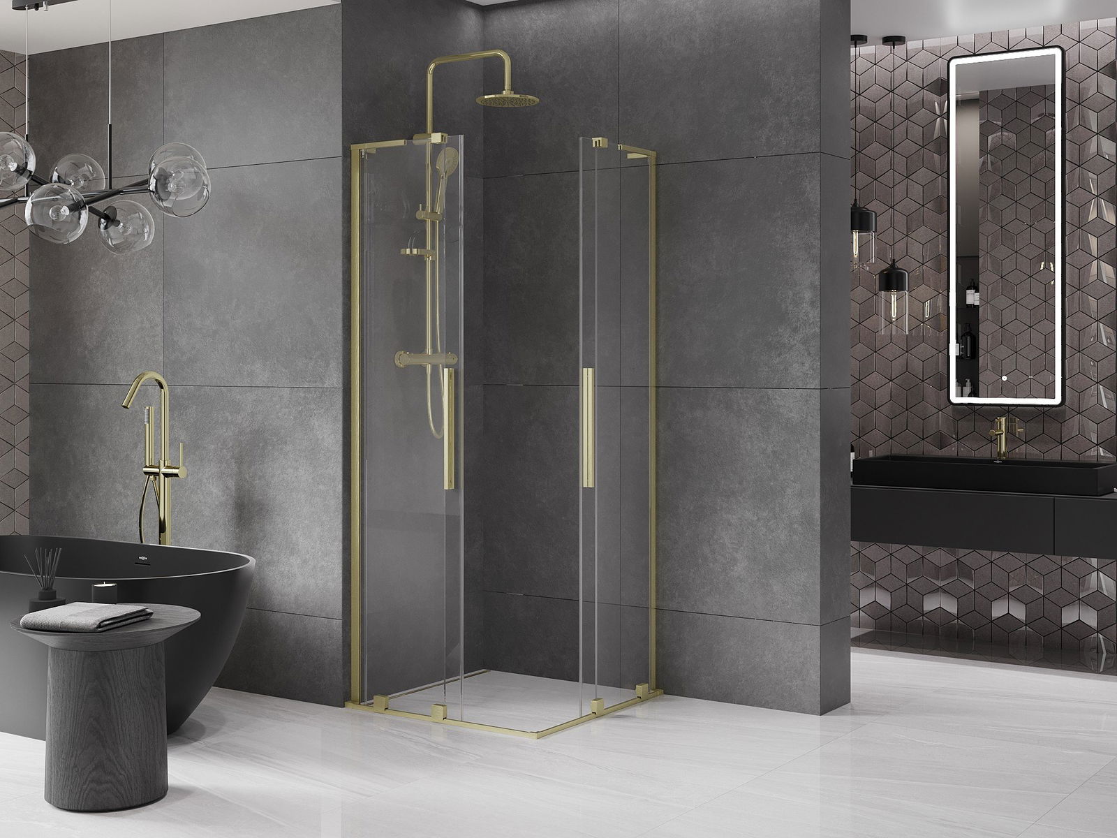 Mexen Velar L Двукабинна плъзгаща душ кабина 100 x 100 см, прозрачна, четкано
