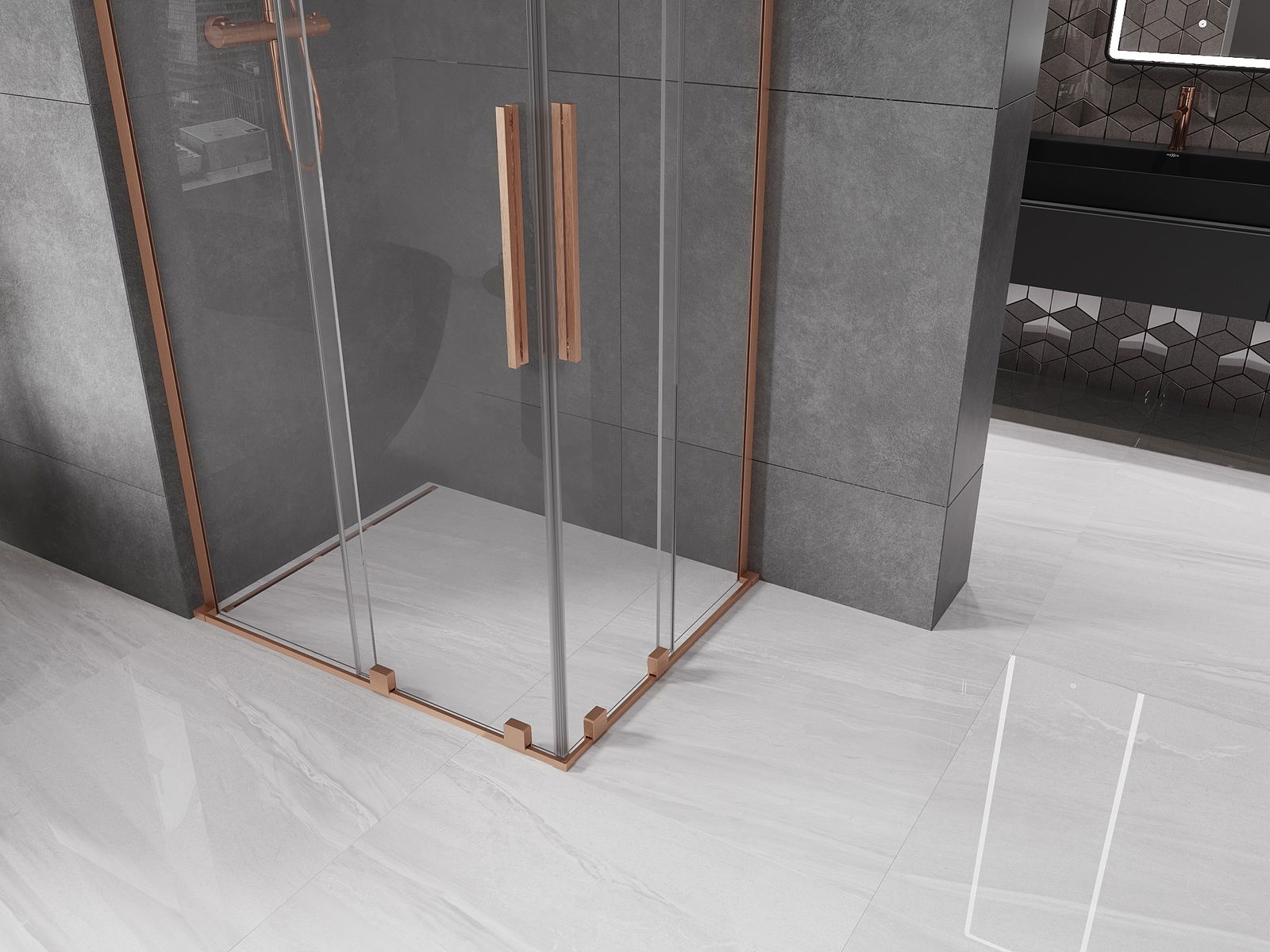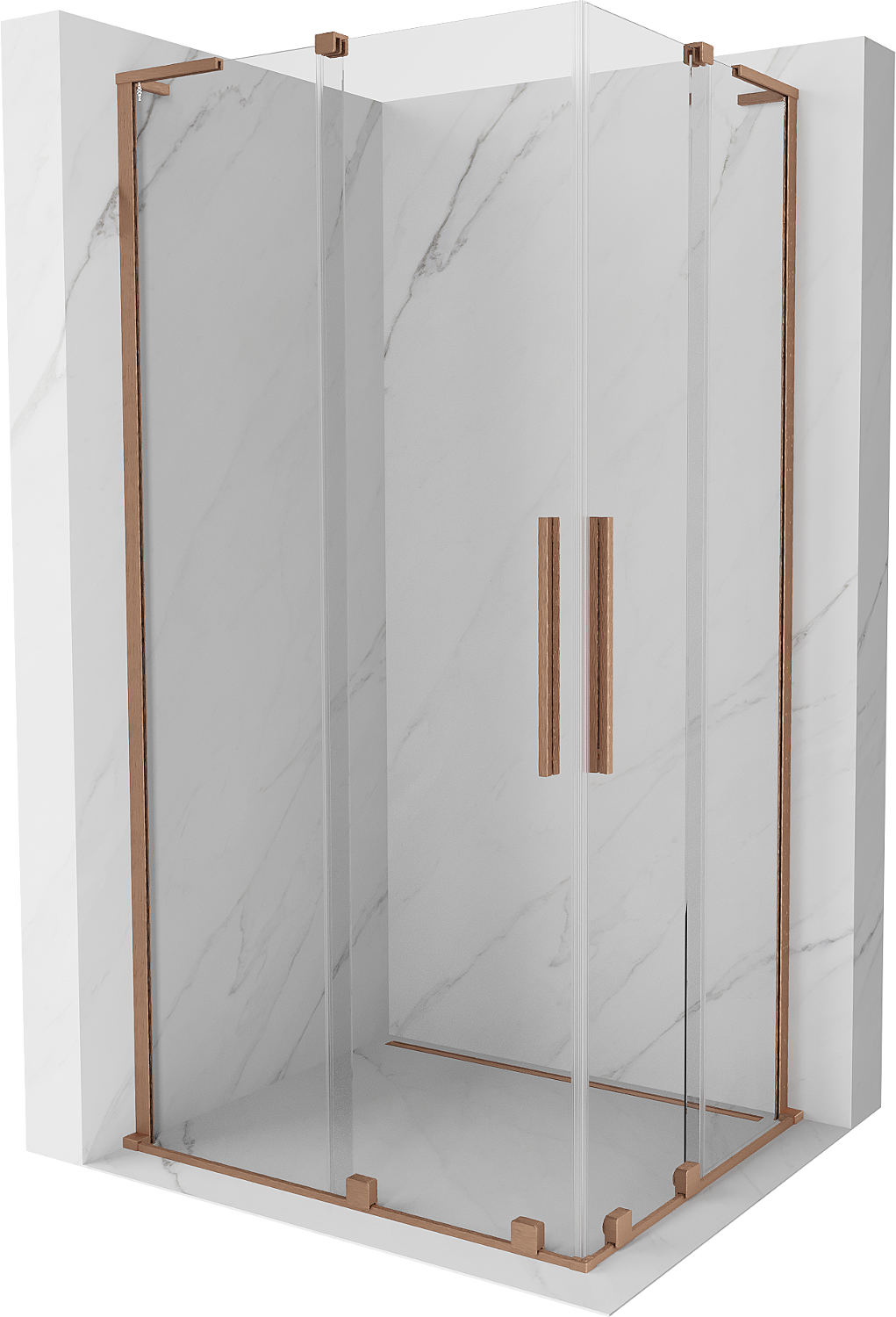 Mexen Velar L Duo плъзгаща се душ кабина 90 x 80 cm, прозрачна, четкана мед - 871-090-080-02-03-65
