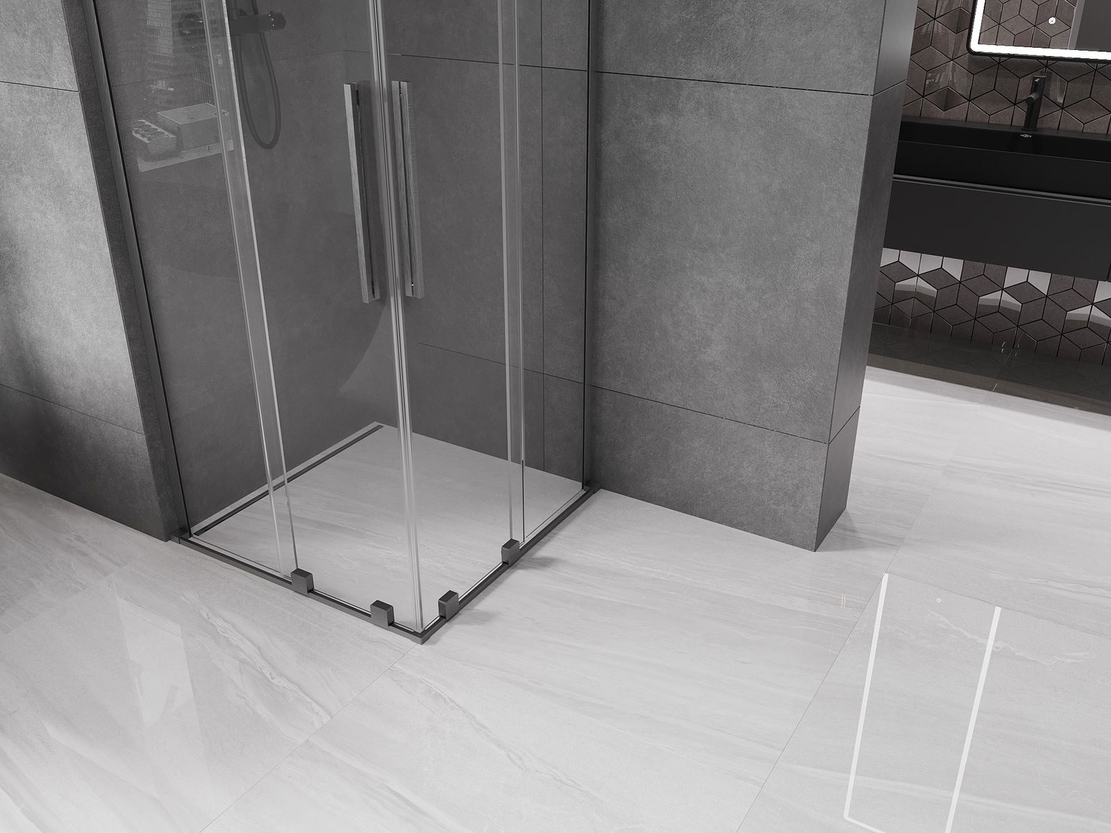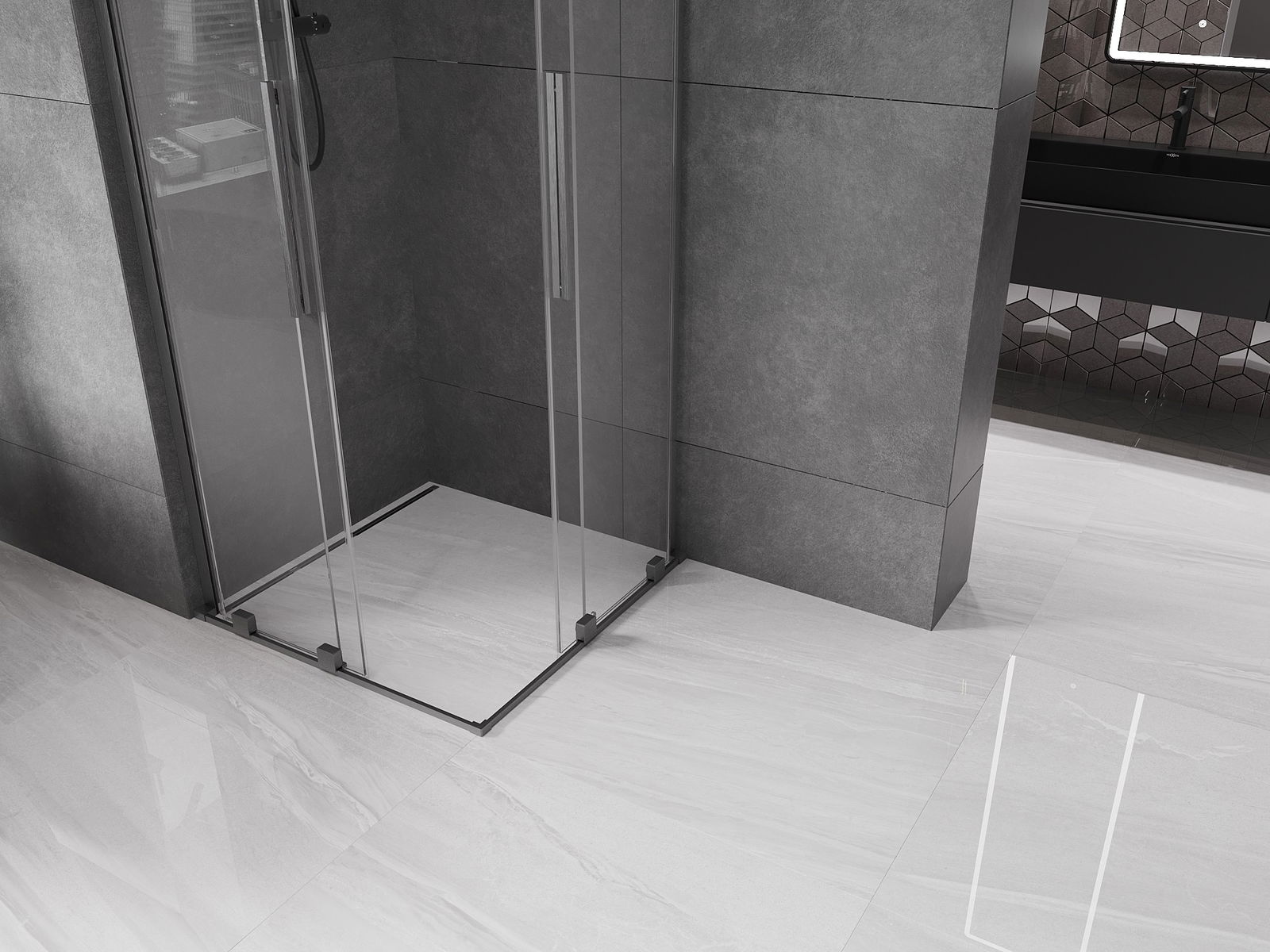 Mexen Velar L Duo плъзгаща се душ кабина 80 x 80 см, прозрачна, четкано пистолетно сиво - 871-080-080-02-03-66