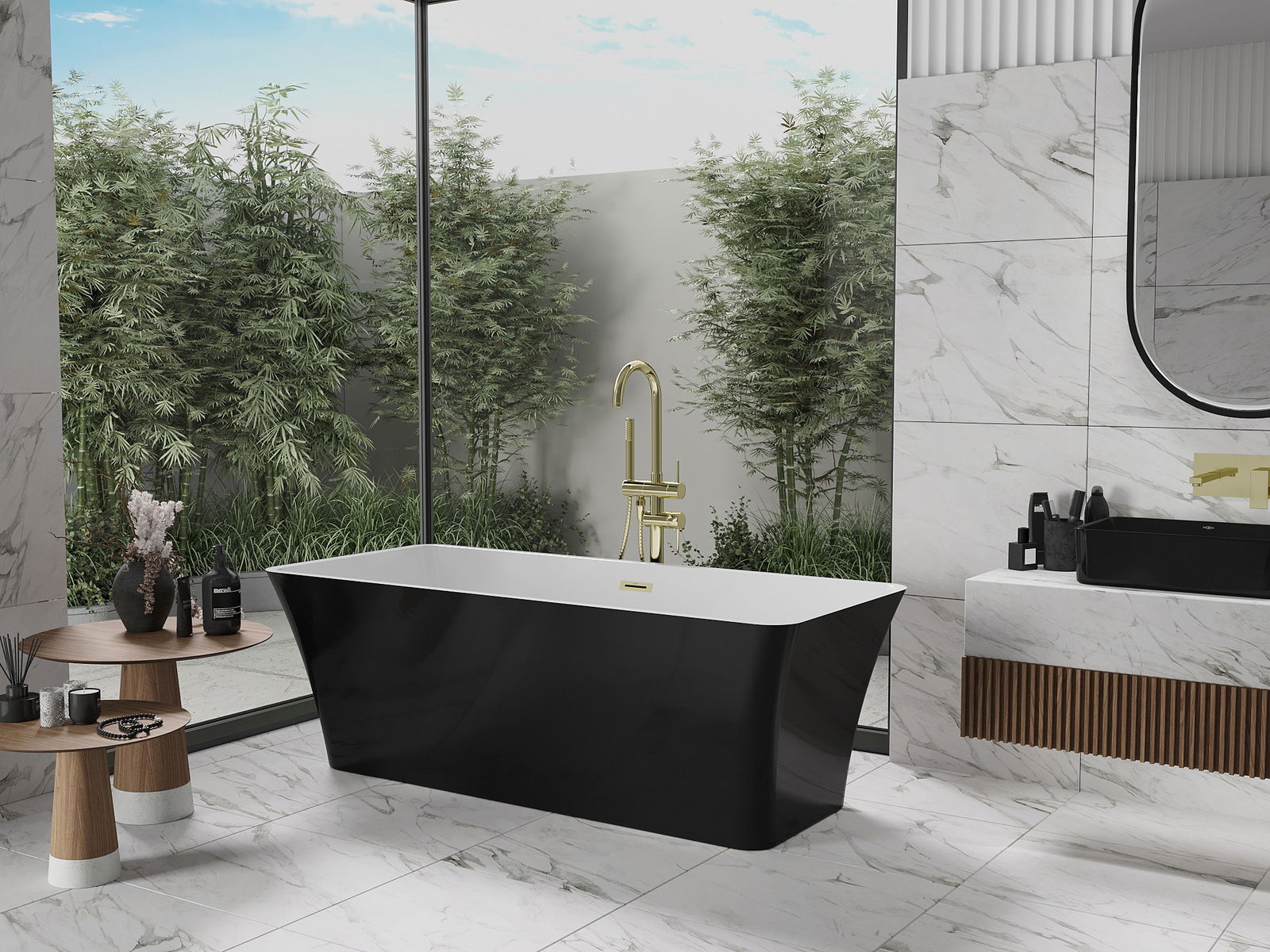 Mexen Tonia свободностояща вана 170 x 75 cm, бяла/черна, преливник златист четкан - 52171707575-55