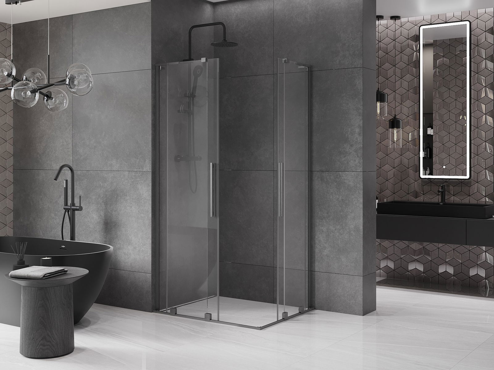 Mexen Velar L Duo плъзгаща се душ кабина 100 x 90 см, прозрачна, четка сиво пушечно сиво - 871-100-090-02-03-66
