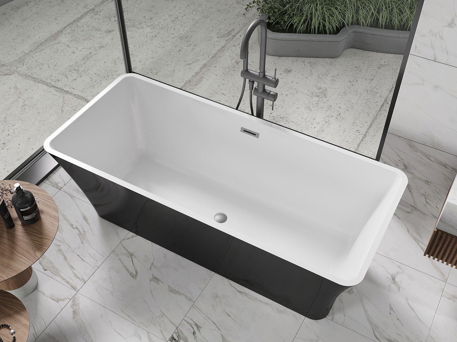 Mexen Tonia свободностояща вана 170 x 75 см, бяла/черна, преливник gun metal - 52171707575-95