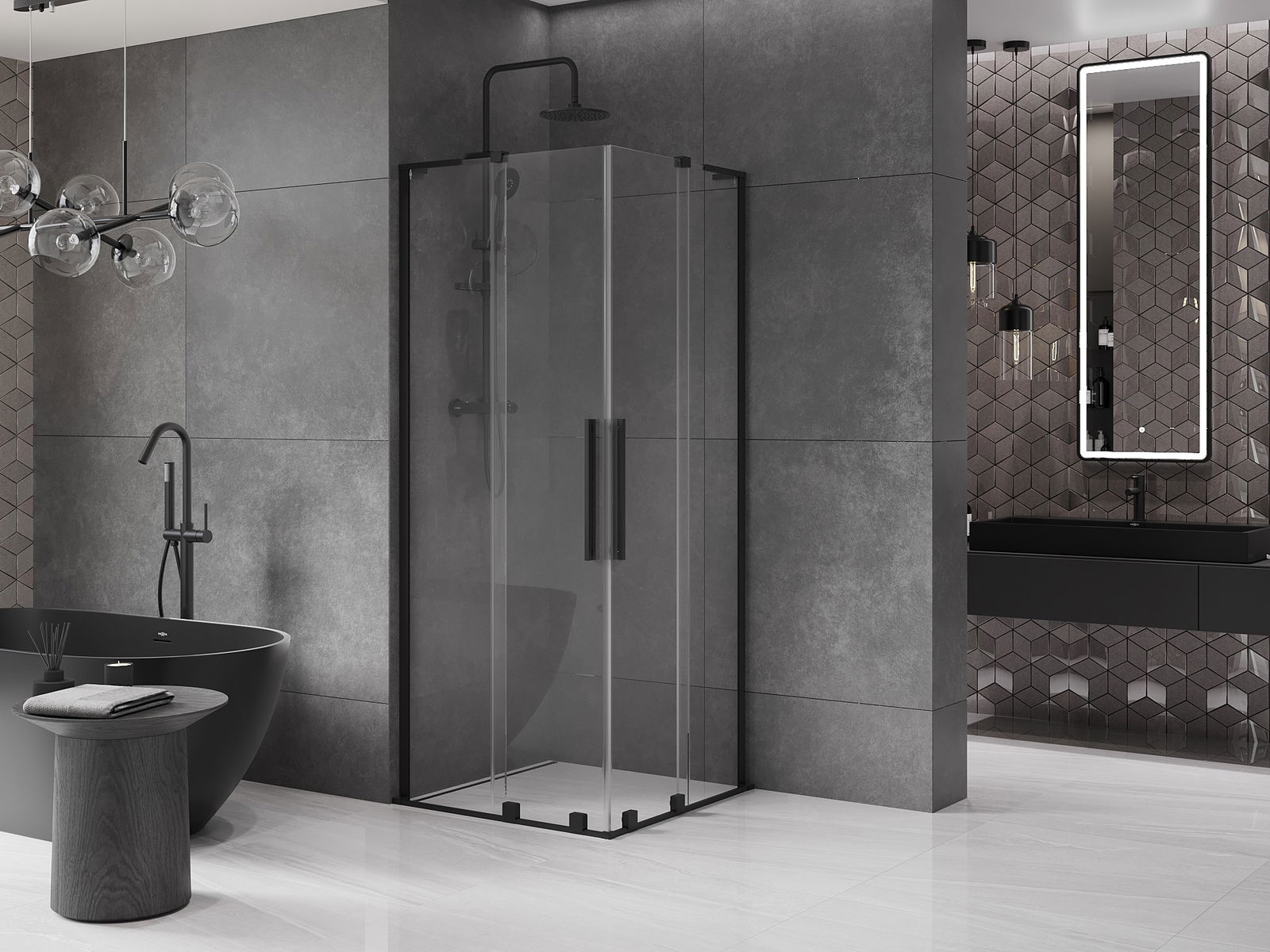 Mexen Velar L Duo плъзгаща се душ кабина 90 x 90 cm, прозрачна, черна - 871-090-090-02-03-70