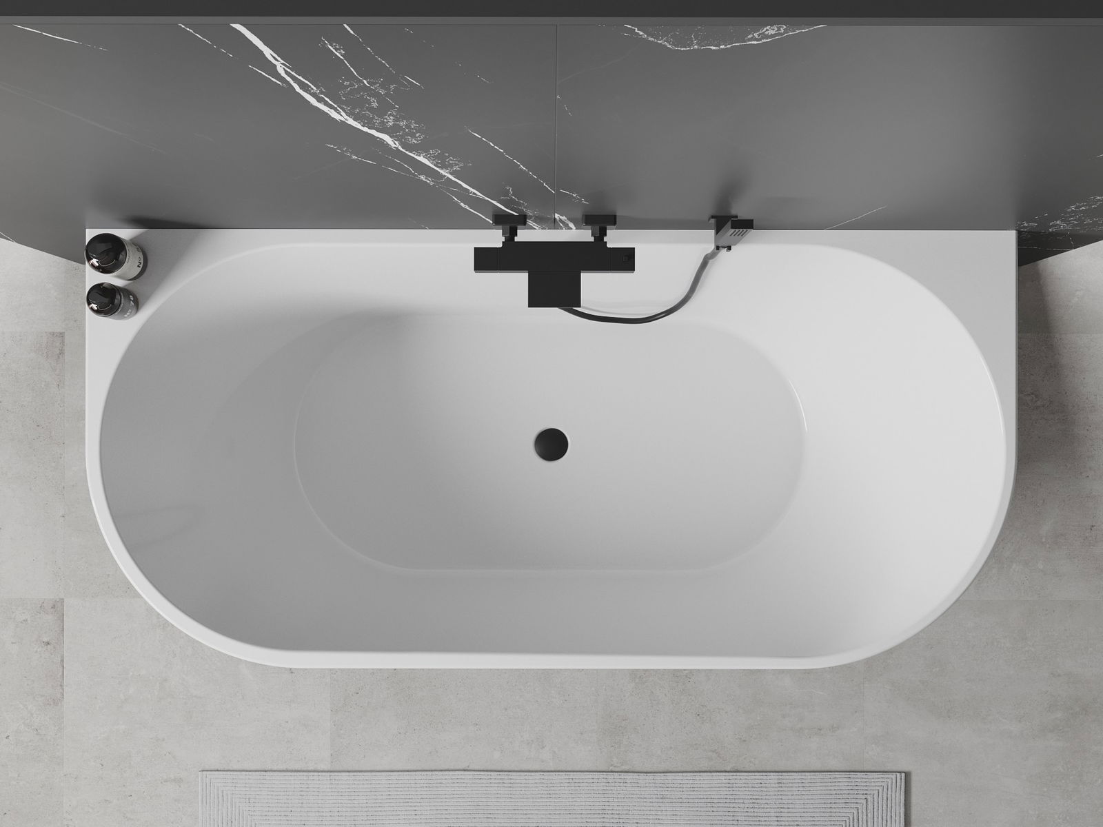 Mexen Oval свободностояща вана за стена 140 x 75 см, бяла, черен преливник
