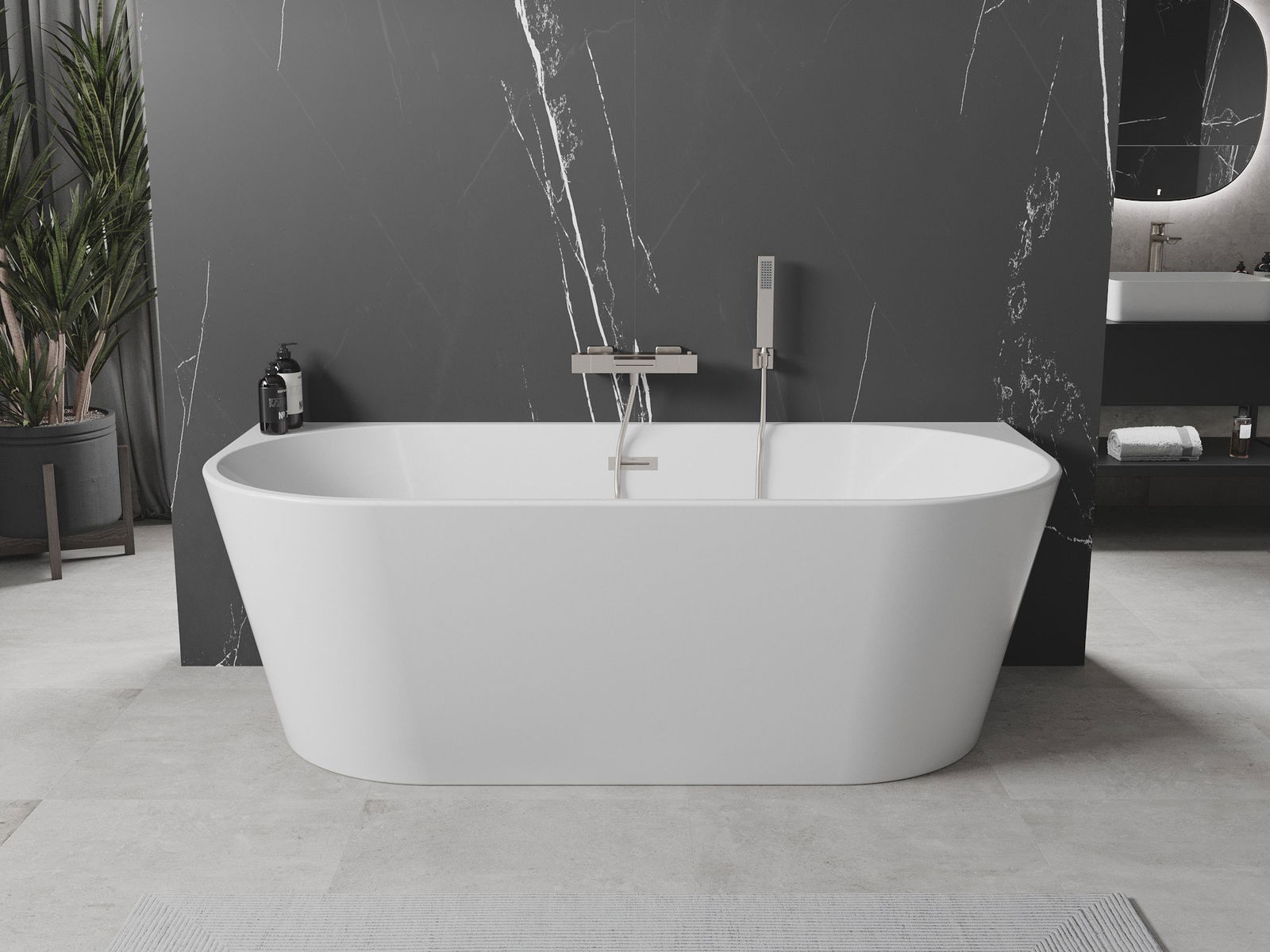Mexen Oval свободностояща вана близо до стената 140 x 75 см, бяла, преливник матиран никел - 52671407500-97