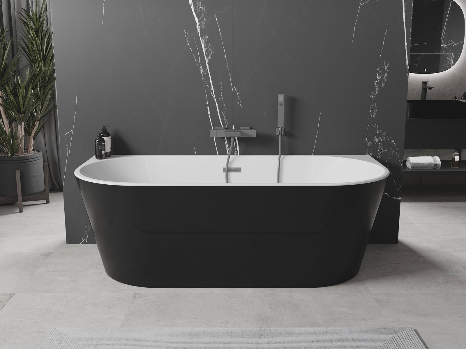 Mexen Oval е елегантна самостоятелна вана с размери 140 x 75 см, проектирана с мисъл за комфорт и естетика. Изработена от санитарен акрил, в бял/черен цвят, със завършек в полиран gun grey. Ваната е с дълбочина 45 см и височина 58 см, което осигурява удобна употреба. Включва отвор за преливник и сифон с тапа "клик клак". Овалната форма и устойчивостта на матиране и UV облъчване я правят отличен избор за съвременни бани.
