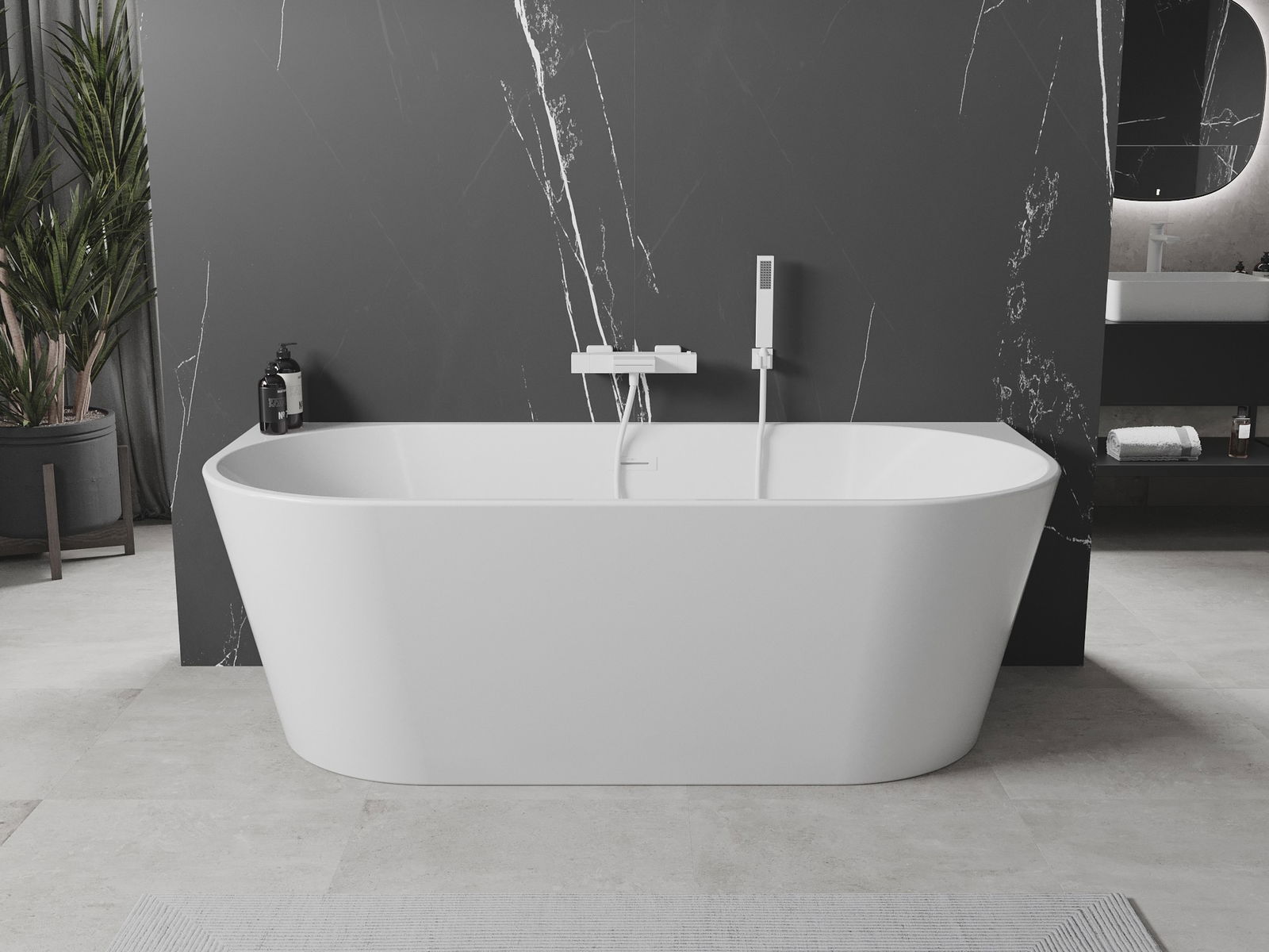Mexen Oval самостоятелна вана до стена 150 x 75 см, бяла, бял преливник