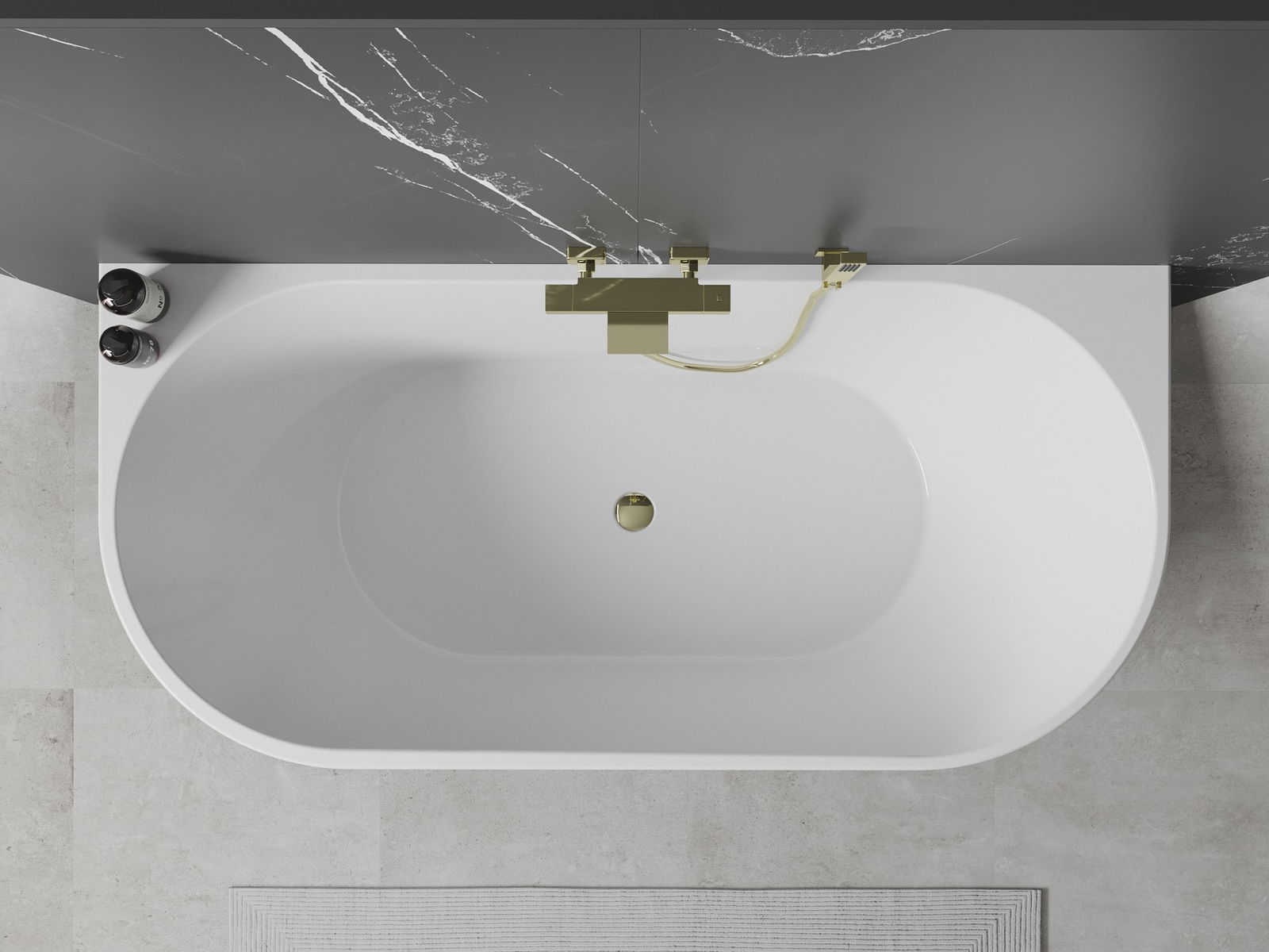 Mexen Oval самостоятелна вана до стената 150 x 75 см, бяла, преливане златно