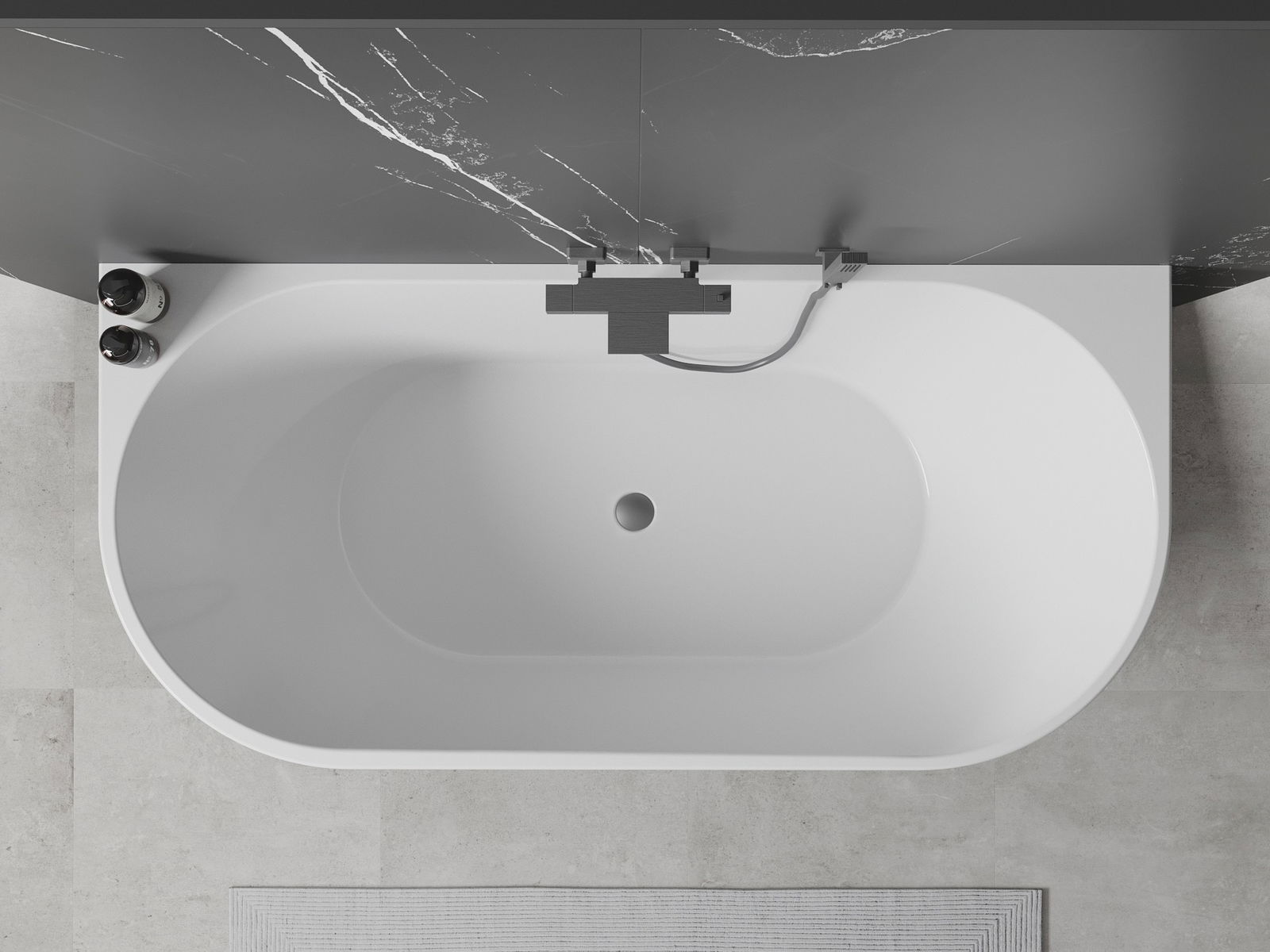 Овалната свободностояща вана Mexen с размери 150 x 75 см е идеален избор за хора, които ценят елегантността и съвременния стил. Изработена от санитарен акрил, тя се характеризира с устойчивост на замъгляване и UV радиация, което осигурява дълготраен вид. Нейната висока конструкция (58 см) и дълбочина (45 см) гарантират комфорт при ползване. Ваната е налична в класическа бяло-черна цветова гама с завършек gun metal, обогатена с преливен отвор и сифон с капачка клик-клак, което увеличава функционалността й.